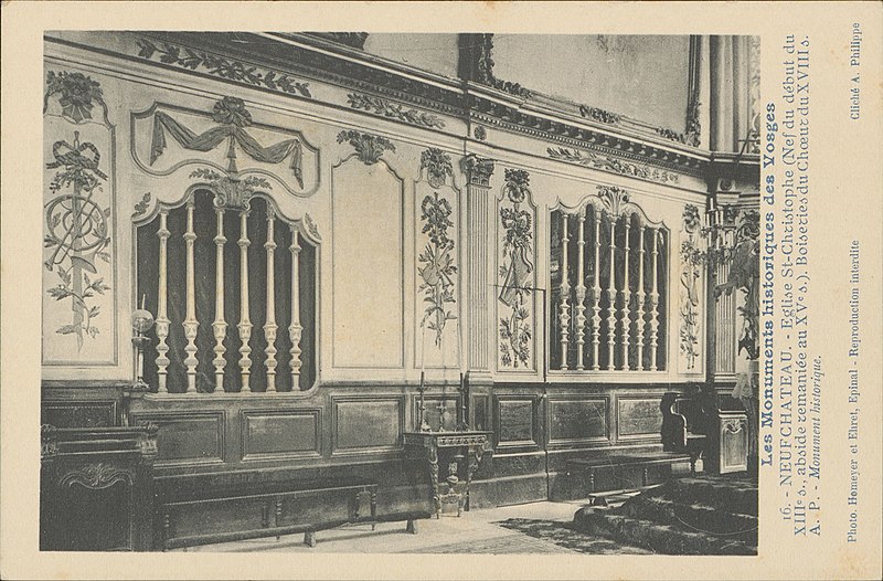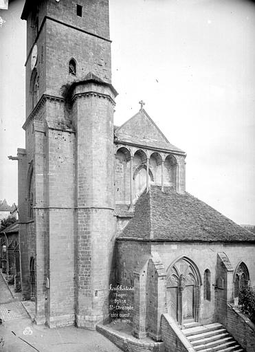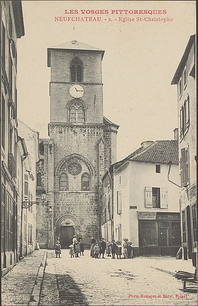 L'église Saint-Christophe, située à Neufchâteau dans les Vosges, est un édifice catholique dont l'histoire se lit à travers de nombreuses campagnes de construction et de restauration. À un premier bâtiment non documenté a succédé un second reconstruit sous l'impulsion de l'abbé Théomar de Saint-Mansuy de Toul et consacré par son successeur Ricuin (1108-1124). L'édifice a été entièrement reconstruit dans la première moitié du XIIIe siècle. Aux XIVe et XVe/XVIe siècles se succèdent des aménagements : la chapelle au sud du porche et le voûtement de la deuxième travée de la chapelle au nord du chœur au XIVe siècle, puis le voûtement de la deuxième travée de la chapelle sud du chœur et du chœur à la fin du XVe ou au début du XVIe siècle. Au XVIe siècle, les troisième et quatrième travées des bas-côtés ont également été voûtées. En 1505, la famille Woeiriot fit construire l'actuelle chapelle des fonts, comme l'indique la date portée sur le mur nord. La sacristie nord fut établie en 1617 par le maître maçon Claude Simon, attribution appuyée par une signature. La charpente a fait l'objet d'une reprise en 1732, signalée par des marques sur la première et la septième ferme. Des travaux sur les chapiteaux de la nef eurent lieu en 1861, et la flèche fut supprimée entre 1866 et 1869 pour être remplacée par un toit en pavillon selon des plans de l'architecte Humbert. En 1898, le maître maçon Mariotte procéda au dégagement des bases de piles et à la réfection du dallage. L'édifice est inscrit au titre des monuments historiques par arrêté du 20 juillet 1908. Parmi ses éléments remarquables, la chapelle funéraire présente une voûte ornée de douze clés pendantes, qualifiée de véritable dentelle de pierre unique en France. L'église conserve par ailleurs de nombreux objets du patrimoine mobilier, dont un orgue, qui sont référencés au titre des monuments historiques. La bibliographie comporte notamment des études de François de Liocourt, Pierre Marot, Marie-Claire Burnand et Jacques Guillaume. Des ressources en ligne, telles que Clochers de France, l'Observatoire du patrimoine religieux, Mérimée, Structurae et divers portails consacrés aux monuments et à l'architecture chrétienne, offrent des compléments d'information.