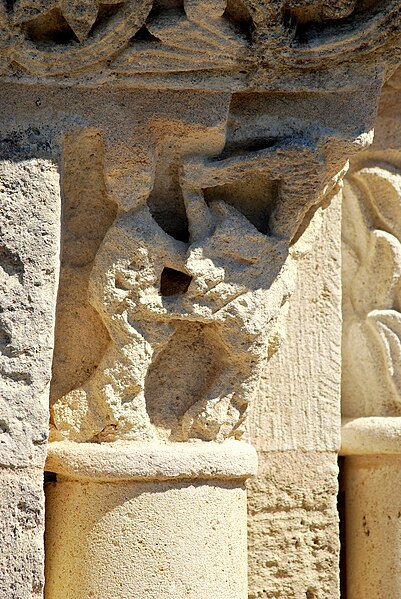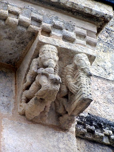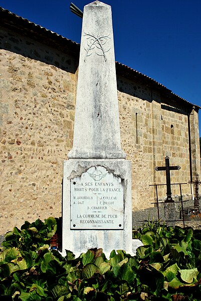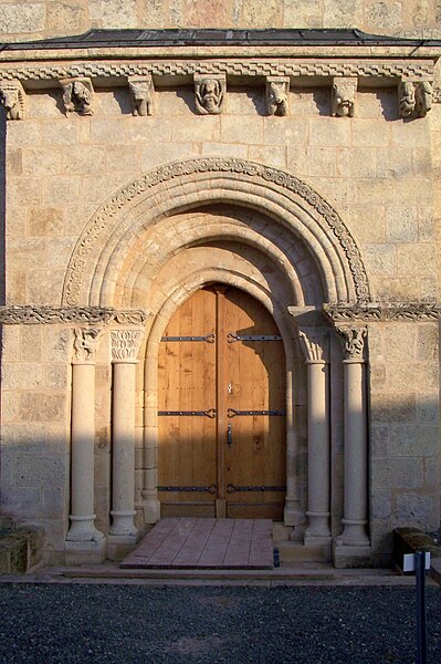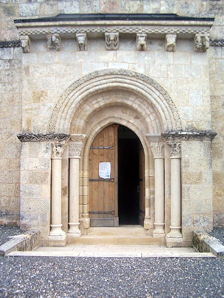 L'église Saint-Christophe du Puch est une église catholique située sur la commune de Sauveterre-de-Guyenne, au lieu-dit Le Puch, le long de la route départementale D670, au nord de la ville. Petit sanctuaire rural, elle illustre le type d'édifice construit entre les XIe et XIIe siècles; l'édifice primitif du XIe siècle est encore lisible dans le petit appareil qui affleure sur les murs gouttereaux nord et sud. La nef unique, charpentée, est bâtie en moellons cubiques et se termine à l'est par une abside en hémicycle élevée en grand appareil régulier et voûtée en cul-de-four. La façade occidentale est également en grand appareil régulier, signe d'une reprise de l'édifice au cours de la première moitié du XIIe siècle. La paroisse est attestée à partir de 1289 comme commanderie hospitalière dépendant de celle de Sallebruneau; l'église est passée aux Templiers, auxquels on attribue l'élaboration du portail occidental. Le portail s'ouvre dans un avant-corps surmonté d'une corniche à modillons et comporte deux voussures romanes avec une voussure interne légèrement asymétrique, datée du XIVe siècle. Le décor des archivoltes et les sujets figurés s'inscrivent dans la lignée des sculptures de l'abbaye de La Sauve-Majeure, et la façade ouest est percée d'un clocher-mur à deux grandes baies ogivales. La seule ornementation sculptée se concentre sur cette façade occidentale, avec une corniche supportée par sept modillons figurés et un portail à trois voussures. Parmi les quatre chapiteaux qui supportent les voussures, seuls ceux du côté nord conservent un caractère roman; ceux du sud ont été remplacés par des compositions plus banales. La première corbeille au nord portait une double collerette de feuillages aujourd'hui très érodée; la seconde, historiée, est très dégradée mais présente un tailloir orné d'arabesques et des reliefs où l'on distingue un être ailé et un homme en marche, dont l'interprétation reste limitée par l'altération de la pierre. La série de modillons qui soutient la corniche compte quatre sujets animaliers et trois sujets humains, bien conservés pour la plupart, à l'exception d'un exemplaire fortement martelé au XIXe siècle. Le thème général de cette frise est une dénonciation de la luxure: on y voit, de droite à gauche, des musiciens juchés sur des acrobates, un chien colleté, un monstre avalant deux oies, une sirène bicaudale, un autre monstre ricaneur, un couple humain mutilé dont la lecture suggère une scène de copulation, et enfin un chien féroce. Le clergé roman considérait particulièrement suspects les musiciens et les saltimbanques, car les fêtes profanes favorisaient selon lui les péchés charnels, explication qui éclaire le choix des sujets sculptés. L'édifice comprend également, à l'intérieur, une nef, un sanctuaire, un autel contre le mur sud, un baptistère, une chaire à prêcher et un confessionnal; à l'extérieur se trouvent une croix de cimetière et des monuments aux morts. Le portail a été classé au titre des monuments historiques par arrêté du 14 avril 1909, et l'église a été inscrite dans son ensemble le 16 avril 2002.