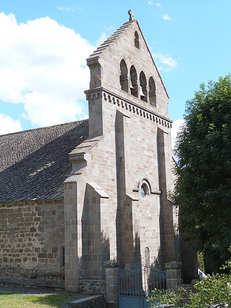 L'église Saint-Cyr et Sainte-Julitte est une église catholique implantée à Dienne, dans le département du Cantal. L'édifice, en grande partie daté du XIIe siècle, est classé au titre des monuments historiques par arrêté du 24 mai 1944. Le portail latéral appartient au XVe siècle et la façade actuelle a été refaite en 1902. Le plan comprend une nef de deux travées flanquée de bas-côtés, un transept, et un chœur d'une travée précédant une abside circulaire ; chaque bras du transept ouvre sur une chapelle circulaire. La nef est couverte en berceau avec des doubleaux à peine saillants, la croisée du transept porte une coupole sur trompes et le chœur est voûté en cul-de-four. La couverture originelle en lauze, finement réalisée, a été remplacée au XIXe siècle par une toiture en ardoises. La façade sud a été modifiée au XVe siècle pour aménager un porche devant la première travée et une chapelle très étroite devant la seconde. La sacristie a été construite en 1760 et, en 1902, l'édifice a été agrandi vers l'ouest : la nef a été prolongée d'une demi-travée pour l'installation d'une tribune. L'extérieur se caractérise par un grand clocher-arcade, inspiré de celui de Beaulieu, ainsi que par un clocher-mur à quatre baies ogivales et un oculus, renforcé par de puissants contreforts ; l'abside en cul-de-four est flanquée de deux absidioles.