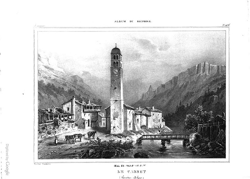 La chapelle Saint‑Claude, alors dépendante de la paroisse de Monêtier, a été reconstruite en 1716‑1717 après l'incendie de l'édifice antérieur, dont la construction remontait à avant le début du XVIe siècle. La date 1716 est portée sur la clé de voûte de l'abside et la date 1717 figure sur la grille d'imposte de la fenêtre axiale. Quand le hameau fut érigé en paroisse en 1828, l'édifice devint église paroissiale, et des travaux secondaires furent effectués au clocher ; la porte occidentale porte les dates 1879 et 1888. Située au Casset, commune de Le Monêtier‑les‑Bains (Hautes‑Alpes) dans le diocèse de Gap et d'Embrun, l'église, appelée « église du Casset », se distingue par son très haut clocher. L'abside conserve des autels du XVIIe siècle, des boiseries, un support en fer forgé pour le cierge pascal et des fonts baptismaux datés de 1717. Fondée au XVIIIe siècle, l'église est inscrite au titre des Monuments historiques depuis 1945 et est référencée dans diverses ressources patrimoniales et religieuses telles que Clochers de France, l'Observatoire du patrimoine religieux, l'Inventaire Provence‑Alpes‑Côte d'Azur et la base Mérimée.