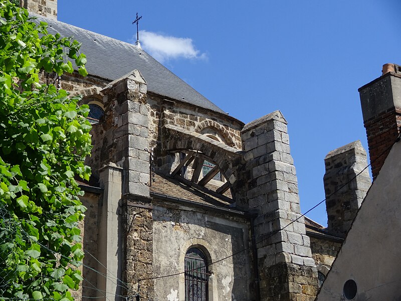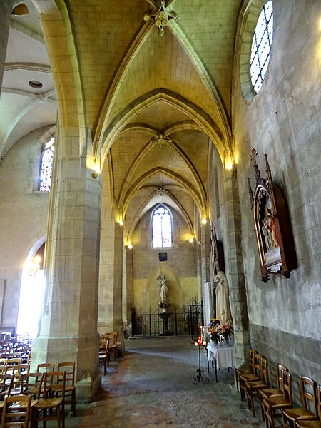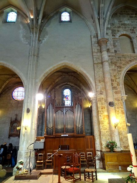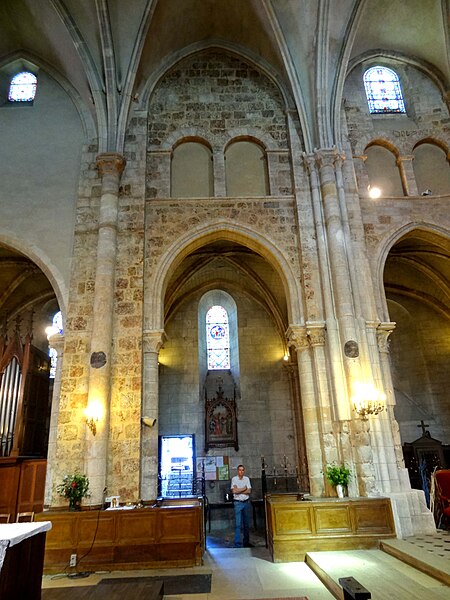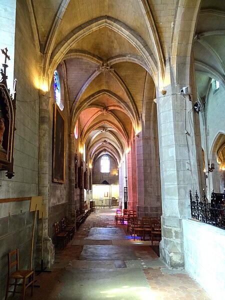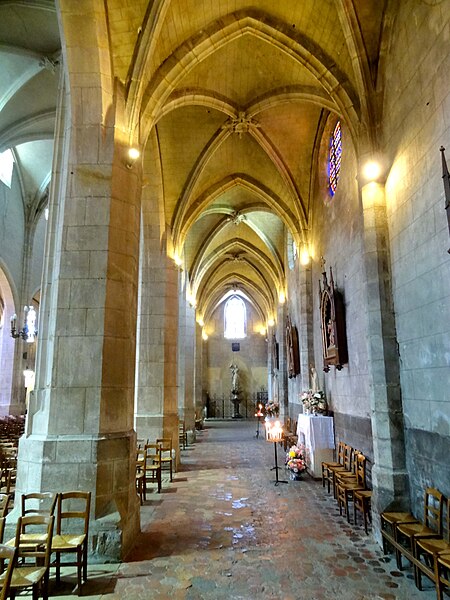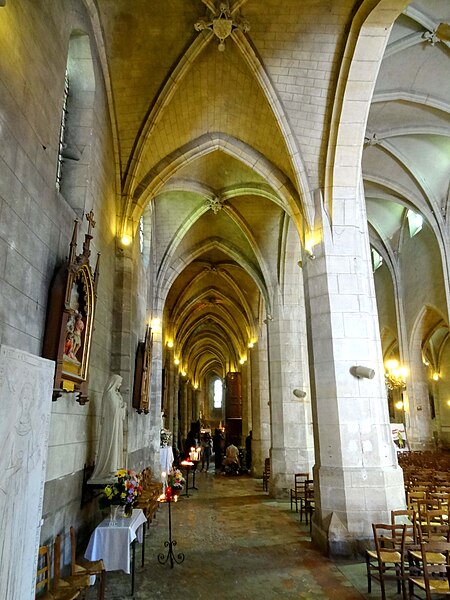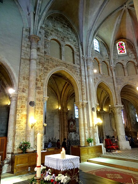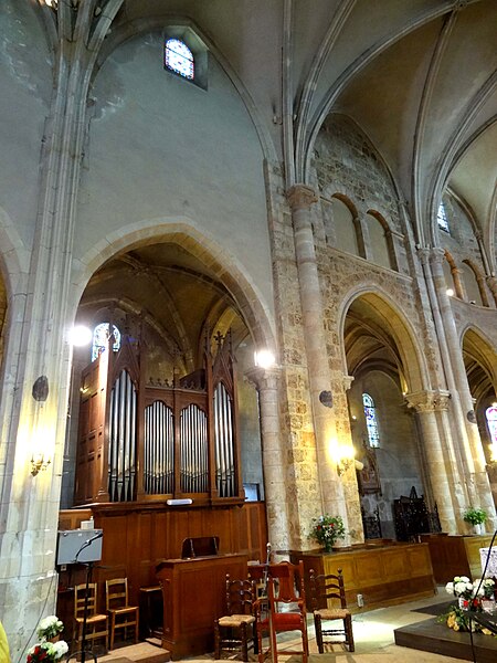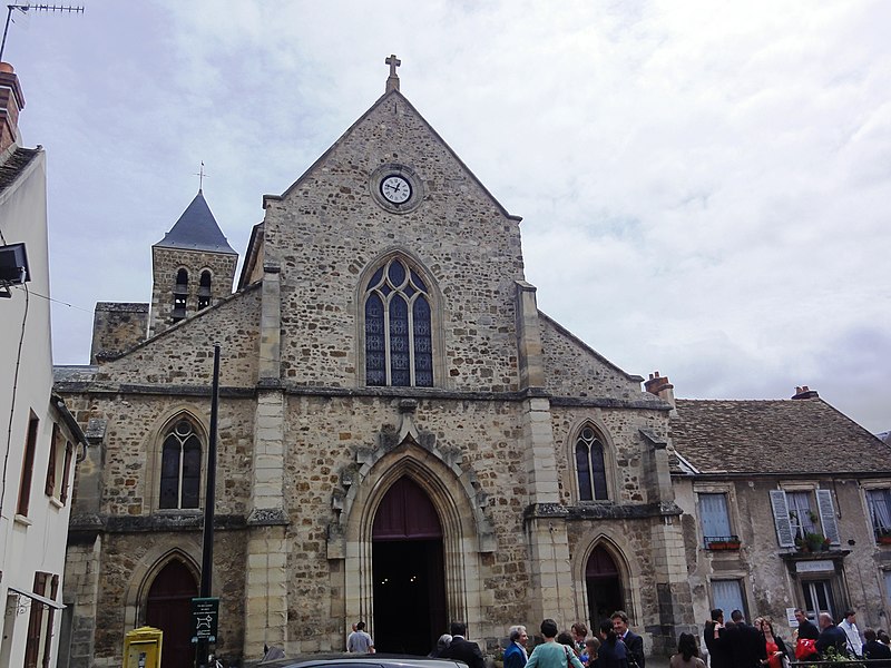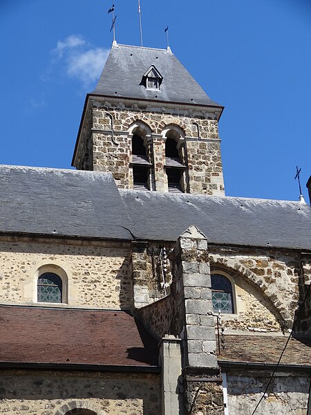 Construite en meulière et en grès, l’église présente un plan en croix latine à trois vaisseaux. La nef compte cinq travées, suivie d’un chœur de deux travées, tous voûtés en croisées d’ogives sexpartites dont les clés portent les armes des Graville et Montagu ; la couverture est en tuile plate. Le mur nord comporte une porte murée en plein cintre dont la base est plus basse que le sol actuel. Plusieurs dalles funéraires se trouvent dans le chœur, notamment celles de Pierre de Chastres et de Louis d’Arpajon.