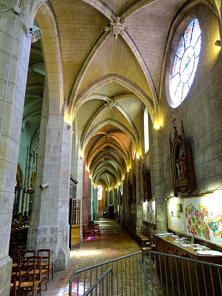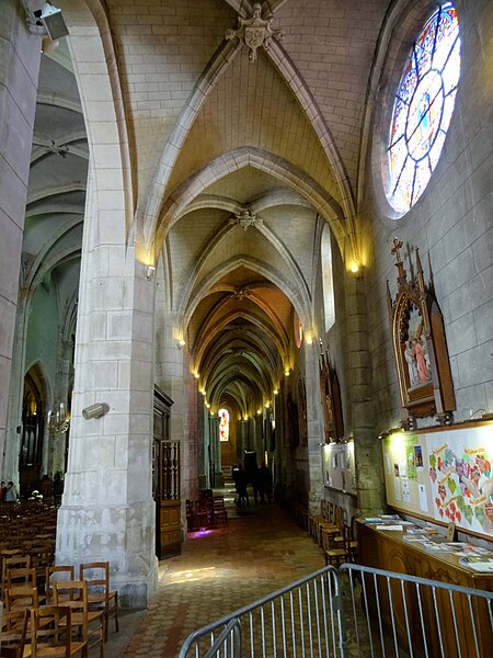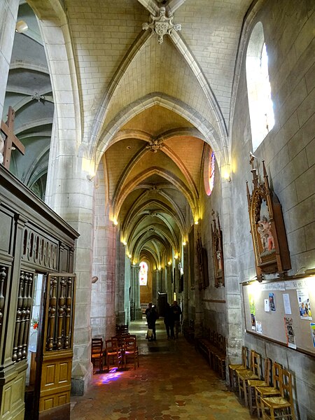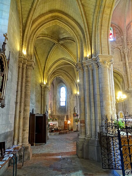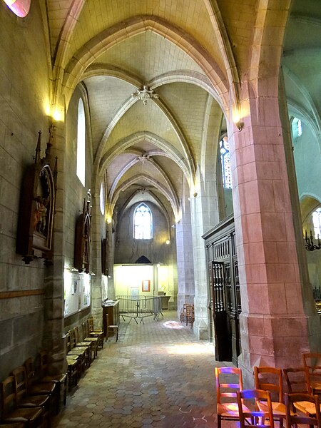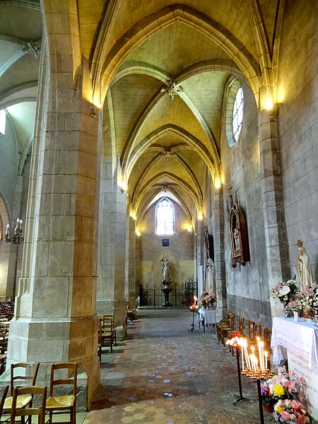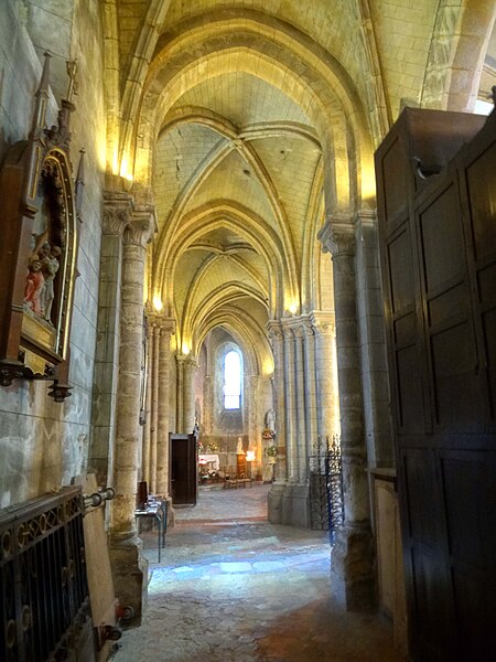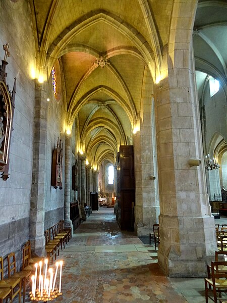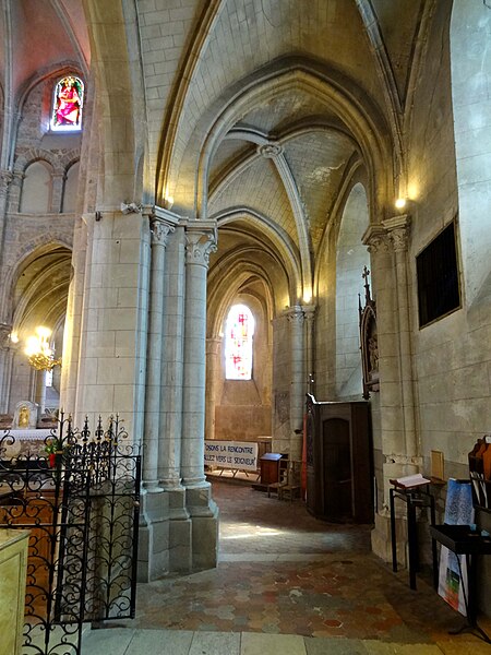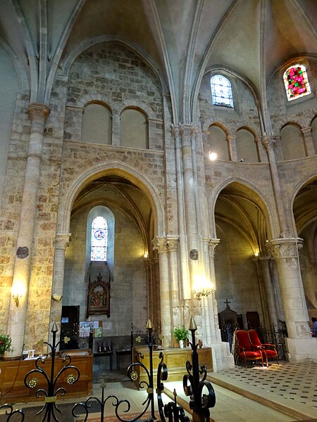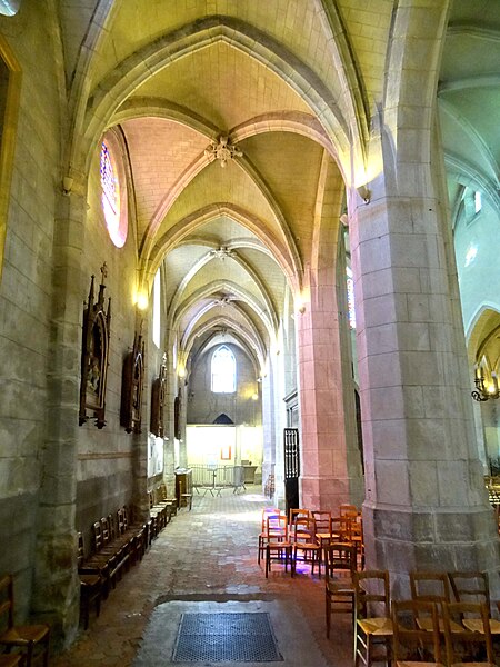 Construite en meulière et en grès, l’église présente un plan en croix latine à trois vaisseaux. La nef compte cinq travées, suivie d’un chœur de deux travées, tous voûtés en croisées d’ogives sexpartites dont les clés portent les armes des Graville et Montagu ; la couverture est en tuile plate. Le mur nord comporte une porte murée en plein cintre dont la base est plus basse que le sol actuel. Plusieurs dalles funéraires se trouvent dans le chœur, notamment celles de Pierre de Chastres et de Louis d’Arpajon.