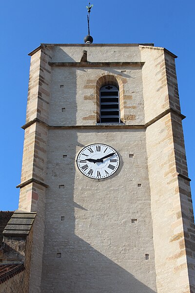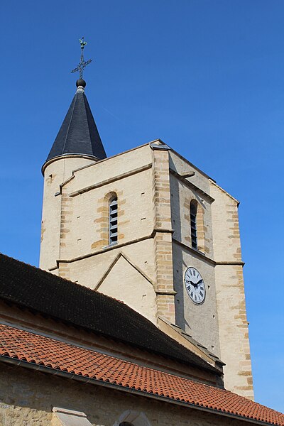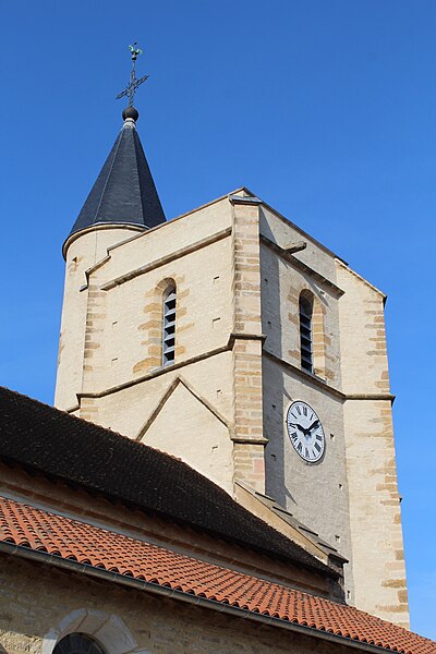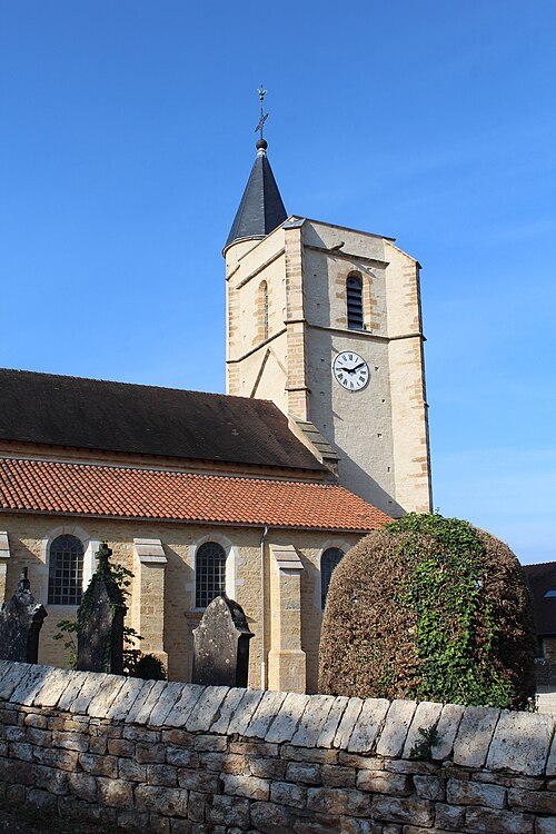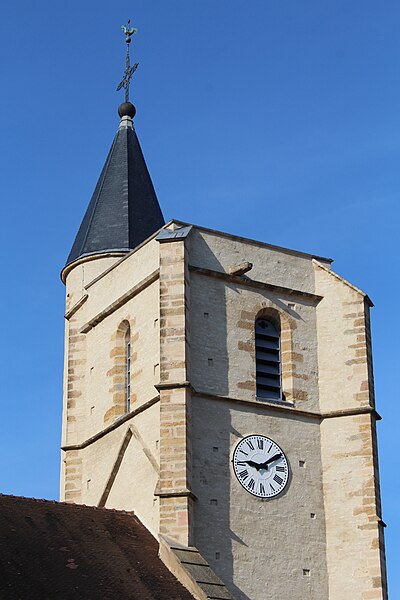 L'église est mentionnée dès 1049. Elle semble avoir été reconstruite au XVIe siècle, la date de 1574 portée sur la tour du clocher-porche en témoignant. Deux chapelles latérales complètent l'édifice. Des travaux d'agrandissement ont été réalisés entre 1828 et 1838.