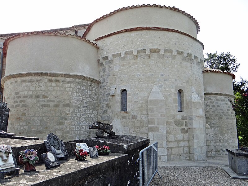 L'église Saint-Colomban, dite aussi Saint-Colomb, se trouve à Saint-Colomb-de-Lauzun, dans le Lot-et-Garonne. Elle comprend une nef et deux bas-côtés qui se terminent par une abside centrale et deux absidioles semi-circulaires voûtées en cul-de-four. Les murs et les voûtes portent des peintures modernes. La façade ouest est précédée d'un clocher formant porche, ajouté au XIVe siècle, et surmontée d'un pignon percé de trois ouvertures destinées aux cloches. Un escalier à vis dit Saint-Gilles permet d'accéder au beffroi ; la porte d'entrée, ménagée dans le mur du clocher, date également du XIVe siècle. La voussure du portail est composée de trois arcs en tiers-point ornés de moulures retombant sur les piédroits. À l'origine, la nef et les bas-côtés étaient voûtés en berceau, mais de graves désordres ont entraîné la ruine de ces voûtes. Les voûtes actuelles, en croisées d'ogives, ainsi que les ouvertures vitrées, ont été refaites au XVe siècle. Les trois nefs et le portail datent du XIVe siècle et l'édifice est inscrit au titre des monuments historiques le 22 février 1927.