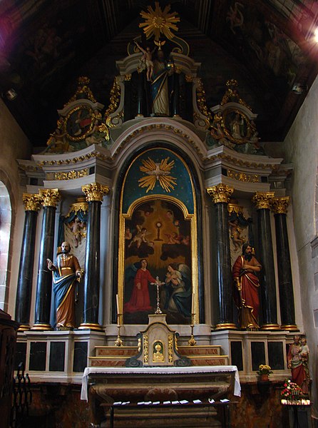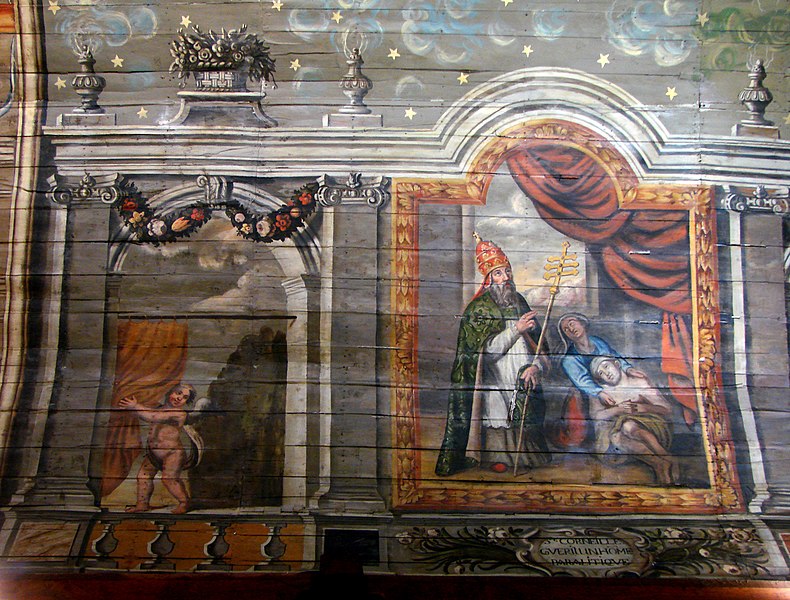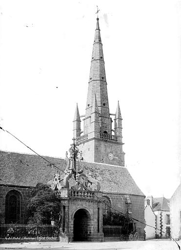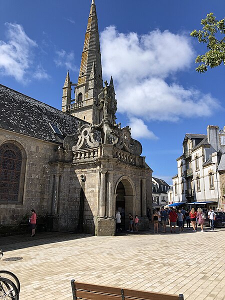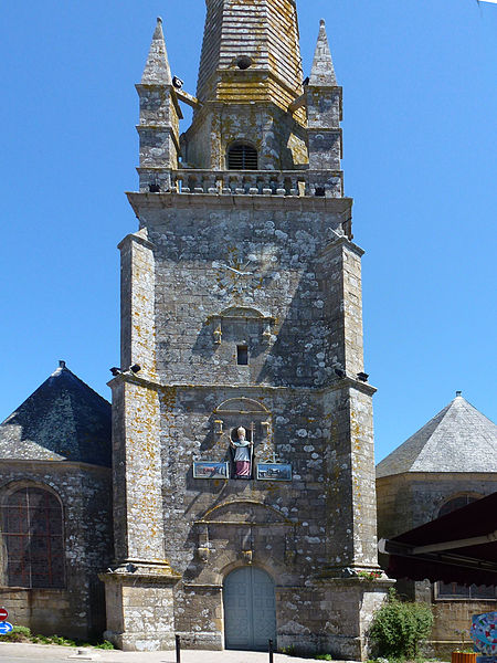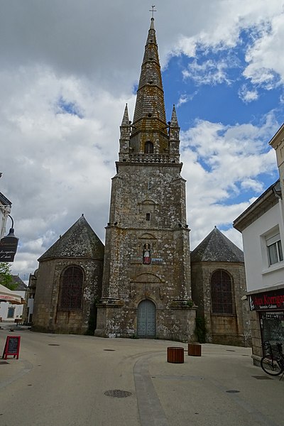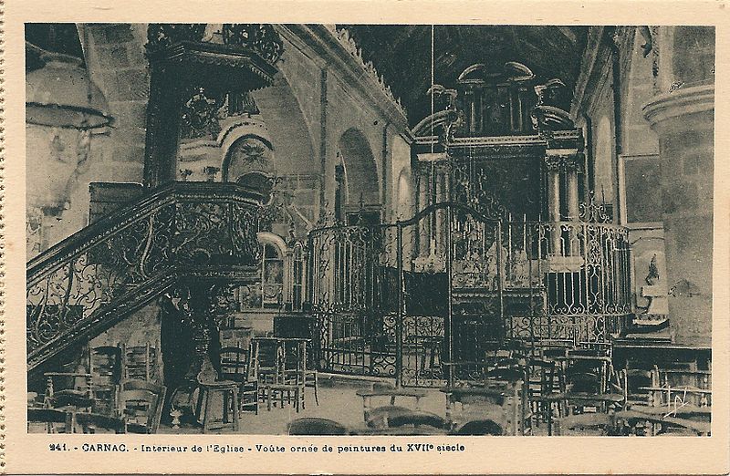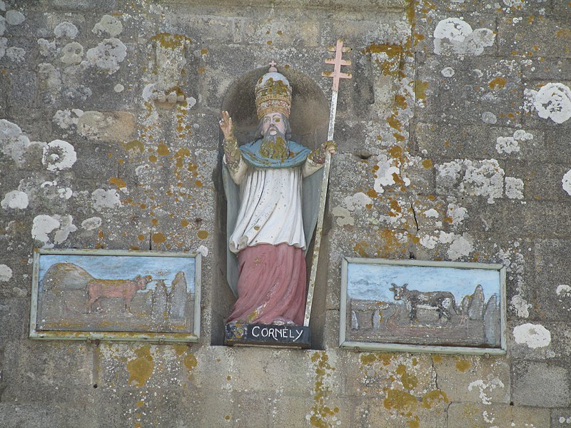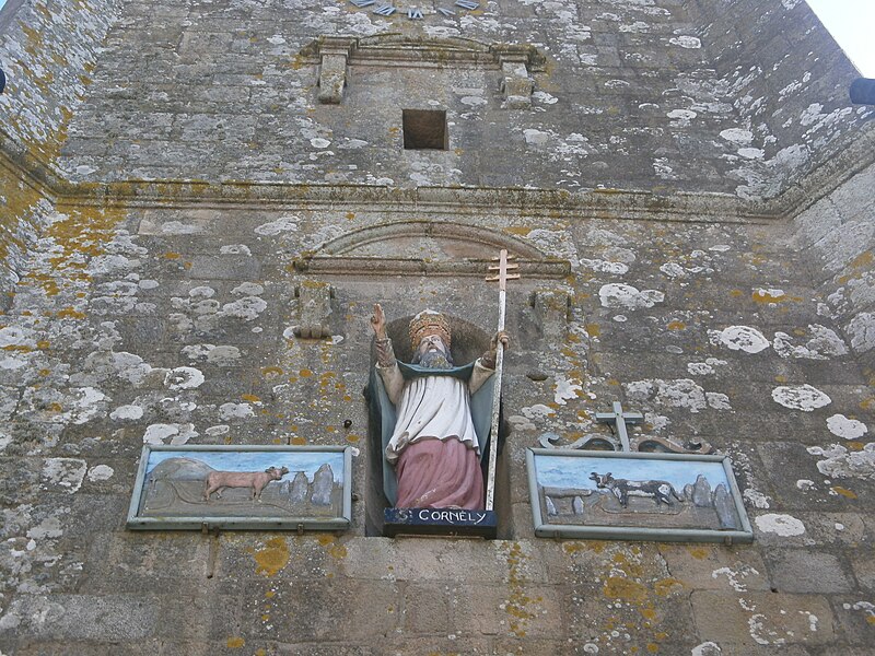 L'église Saint-Cornély est une église catholique située à Carnac (Morbihan), édifiée aux XVIIe et XVIIIe siècles et classée au titre des monuments historiques en 1960. De style Renaissance, l'édifice présente un plan rectangulaire à trois nefs. Les voûtes des nefs sont en lambris polychrome peint représentant des scènes religieuses et des épisodes de la vie du saint ; ces peintures sont l'œuvre de Le Corre de Pontivy, qui signait Dupont. Les voûtes de la chapelle du Rosaire et de la chapelle du Saint-Sacrement ont été achevées en 1732, datation corroborée par un règlement de 500 livres versé à "Dupont". Le chœur est clos par une grille en fer forgé. Le fronton de la façade ouest comporte une niche abritant une statue de saint Cornély. Sur la façade nord, le porche sculpté par Kergoustin, de Baud, en 1792 adopte un vocabulaire d'ordre dorique avec colonnes en pans coupés ; sa corniche est surmontée d'une balustrade qui sert de socle à un baldaquin, flanqué de quatre ailerons se terminant par une couronne surmontée d'une croix. Le clocher, daté de 1639 et haut de 40 m, est constitué d'une tour carrée dotée d'une plateforme à balustrade et de quatre pinacles aux angles, surmontée d'une flèche pyramidale élancée. Le Pardon, célébré le deuxième dimanche de septembre, était très fréquenté ; il a été décrit en 1909 par Zacharie Le Rouzic et demeure organisé aujourd'hui, avec notamment la bénédiction des chevaux. Parmi les éléments remarquables de l'édifice figurent le vitrail relatant la résurrection attribuée à saint Cornély, l'autel et le retable du Rosaire, le reliquaire du saint et l'orgue ; des photographies documentent la façade, la niche, la nef et les voûtes peintes de 1732, le chœur et le collatéral droit.