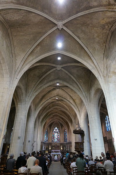 Le bénitier placé à l'entrée contre le premier pilier de droite est parfois présenté par certains historiens locaux comme l'ancienne cuve baptismale ayant servi au baptême de Jean de La Fontaine ; cette assertion n'est pas documentée et reste incertaine. L'église possédait autrefois un jubé, détruit au XVIIIe siècle comme beaucoup d'autres portiques, sous lequel se trouvait le banc de la famille de La Fontaine. La statue de saint Cénéric et un petit reliquaire rappellent la tradition selon laquelle, au Xe siècle, des moines fuyant des invasions auraient d'abord déposé ces reliques à Notre-Dame du Château avant qu'elles ne soient transférées à Saint-Crépin.