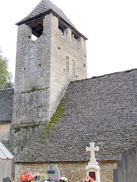 L'église Saint-Crépin est une église catholique romane située dans le village de Saint-Crépin, sur la commune de Saint-Crépin-et-Carlucet, en Dordogne. L'édifice, daté du XIIe siècle et remanié aux XIVe et XVe siècles, se compose d'une nef flanquée de deux collatéraux, suivie d'une travée formant le carré du transept et d'un chœur à abside plate. La nef a été revoûtée d'un plafond à poutrelles alors qu'elle comportait à l'origine une voûte en berceau ; un arc diaphragme sépare ce plafond de la voûte du carré du transept. Dans la pile sud est taillé l'escalier d'accès au clocher, qui s'élève sur le carré du transept. Un arc de décharge plein cintre allège chacun des goutterots du carré ; celui du nord est voûté d'un plafond qui a dû remplacer une coupole. L'ancien presbytère est accolé à l'église du côté sud. L'édifice est inscrit au titre des monuments historiques le 12 décembre 1975.
