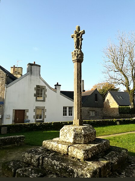 Le clocher s'élève au-dessus de l'arc triomphal qui marque l'entrée du chœur. Son beffroi, porté par un pignon, s'élargit par encorbellement et est coiffé d'une flèche octogonale ; un escalier circulaire adossé au pignon permet d'accéder au beffroi.