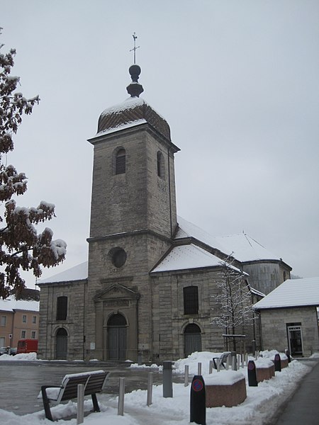L'église Saint-Cyr-et-Sainte-Julitte de Champagnole, située au centre de la ville dans le Jura, est un édifice du XVIIIe siècle doté d'un clocher à dôme à impériale, caractéristique des clochers comtois. Elle est dédiée aux martyrs du IIIe siècle, sainte Julitte et son fils saint Cyr, et est inscrite aux monuments historiques depuis 1994. L'édifice a été reconstruit entre 1750 et 1755 sur la place centrale, à côté de l'actuel hôtel de ville, à l'emplacement d'une église primitive du Ve siècle. À la fin du XVIIIe siècle, il a été agrandi par l'adjonction de bas-côtés en 1789 sous la direction de l'architecte G. Blondeau. L'autel et le retable proviennent du couvent des Ursulines de Poligny ; le retable, de style baroque et daté du XVIIe siècle, a été acquis en 1792 après la suppression du couvent pendant la Révolution. Cet ensemble représente les martyrs sainte Julitte et saint Cyr et le retable est classé au titre des monuments historiques depuis 1919. L'orgue, construit en 1721 par le facteur Marin Carouge pour un couvent de Poligny, provient également de Poligny et a été classé monument historique en 1955.