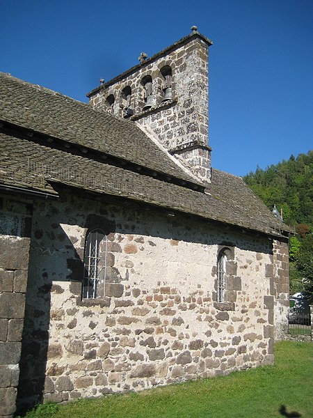L’église Saint-Cyr et Sainte-Julitte se situe sur la D17 à Saint-Cirgues-de-Jordanne, dans le Cantal (Auvergne). Le sanctuaire, le clocher et le pignon pourraient remonter au début du XIIe siècle et constituent des vestiges d’une église qui était à l’origine un prieuré de l’abbaye Saint-Gérauld d’Aurillac. Le chœur et l’abside, en cul-de-four, relèvent de cette période romane. La nef et les chapelles latérales sont attribuées au XVe siècle ; le texte signale par ailleurs la destruction de cinq chapelles au cours du même siècle. La sacristie et le porche couvert datent de 1667, tout comme la croix de pierre du parvis qui se trouve devant l’entrée latérale et sert également de monument aux morts de la commune. La voûte et les peintures de la nef sont l’œuvre de 1855, dans le cadre de remaniements du XIXe siècle. L’édifice présente un clocher-mur (clocher peigne) percé de quatre petites ouvertures abritant les cloches. L’église est inscrite à l’Inventaire supplémentaire des monuments historiques par arrêté du 30 janvier 1986.