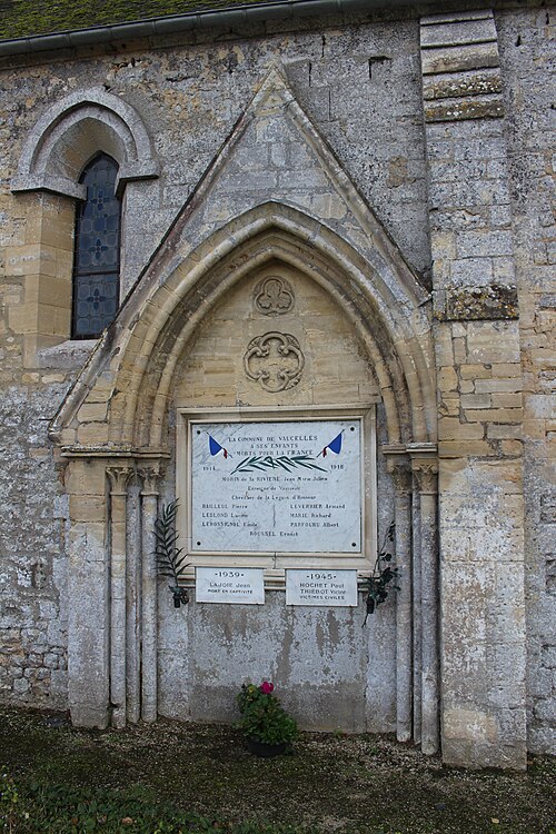 L'église Saint-Cyr-et-Sainte-Julitte, située à Vaucelles dans le Calvados (Normandie), date du XIIIe siècle et est inscrite au titre des monuments historiques depuis le 21 mai 1927. De plan longitudinal simple et orientée au sud-est, elle présente de fortes analogies avec l'église voisine de Barbeville, le clocher faisant toutefois office de tour-lanterne entre la nef et le chœur. Vers le milieu du XIXe siècle, un portail a été percé dans le pignon ouest à l'initiative du curé, et la porte latérale nord de la nef a été murée; à l'emplacement de cette porte une plaque commémorative des victimes des deux guerres mondiales a été scellée. La nef conserve des fenêtres étroites en lancette et une porte nord qui était autrefois abritée par un porche dont on voit la trace au-dessus de l'arc brisé. Deux fines colonnes aux chapiteaux à galbe caractéristique soutiennent cet arc brisé décoré de tores simples; le tympan est orné d'un quatre-feuilles et d'un trèfle. Le portail occidental, percé au XIXe siècle, s'appuie sur trois colonnes fines aux chapiteaux végétaux et un arc brisé orné de tores; le tympan, soutenu par deux têtes humaines sculptées, présente trois quatre-feuilles tandis que d'autres têtes figurent aux extrémités de l'archivolte. Une statue de la Vierge à l'Enfant est scellée dans une baie aveugle sur la façade, entourée de deux fenêtres plus étroites. La tour s'élève sur trois niveaux successifs en retrait par des glacis et est encadrée par quatre contreforts jusqu'à l'étage du clocher; le deuxième niveau comporte trois arcs brisés, celui du milieu étant ajouré d'une rose quadrilobée. Sous le toit en pierre en bâtière, une baie en arc brisé s'ouvre dans chacun des quatre murs de l'étage des cloches; à l'intérieur, la voûte de la travée de la tour est plus haute que celle du chœur et deux quatre-feuilles y apportent une lumière supplémentaire. Le chevet plat est éclairé par un triplet de lancettes en arc brisé; les murs gouttereaux ne comportent chacun qu'une fenêtre. Côté nord, une petite porte du XIIIe siècle, murée depuis longtemps, est encadrée de deux colonnes fines aux chapiteaux élancés qui portent un arc plein cintre à multiples tores; le tympan présente un arc brisé trilobé orné d'un trèfle et encadré de demi-palmettes sous un petit arc cintré. Le chœur et l'intérieur de la tour ont subi de larges restaurations au XIXe siècle; une frise de billettes court tout autour du chœur voûté en pierre. L'autel porte en haut-relief une représentation de la Cène; les fonts baptismaux du XVIIe siècle sont ornés de chérubins en demi-ronde bosse, et la chaire à prêcher en bois, en forme de cloche renversée ou de tulipe, date de la fin du XVIIIe ou du tout début du XIXe siècle.