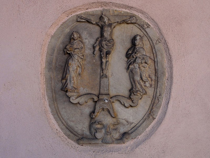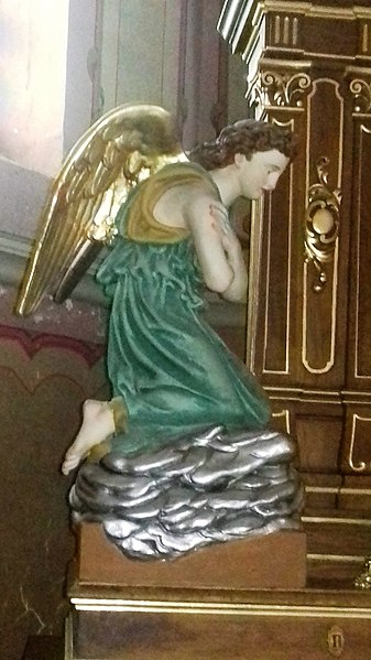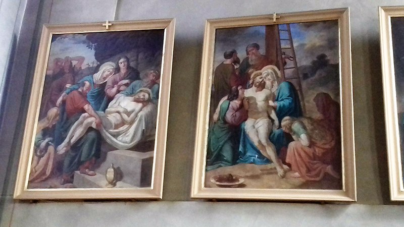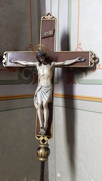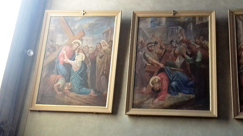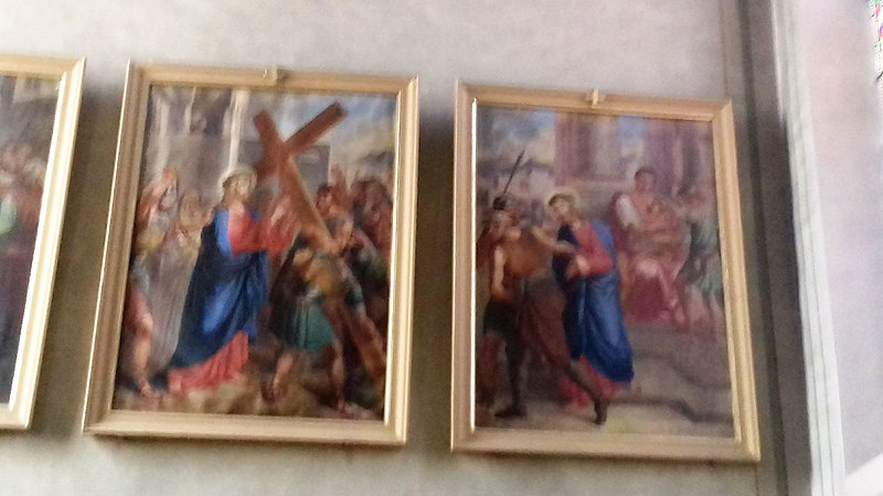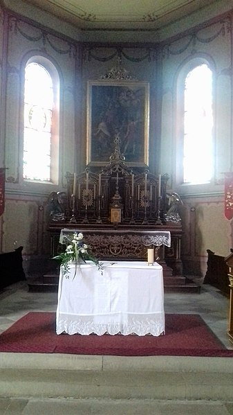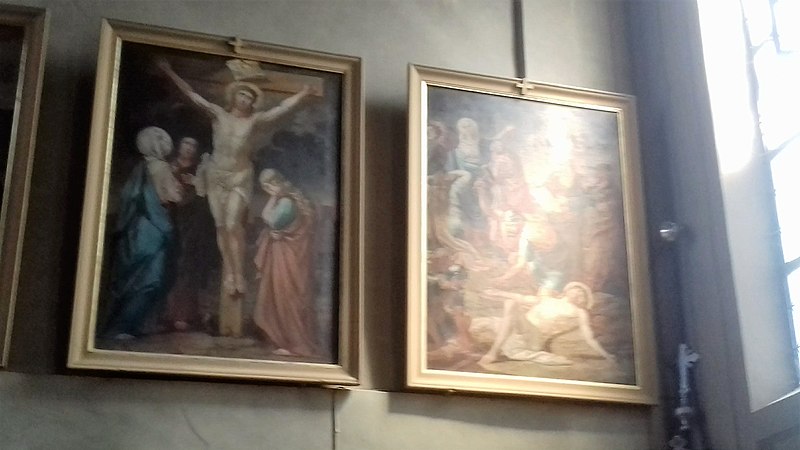 Ornementation des élévations intérieures avec des décors peints géométriques et végétaux.