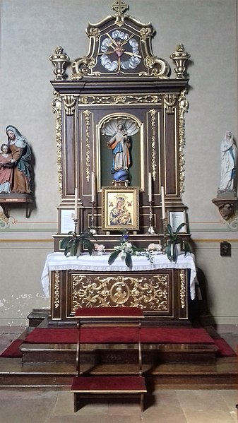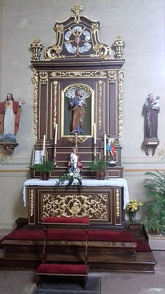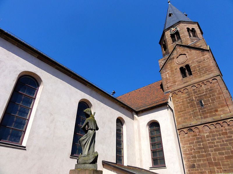 L'église Saint-Cyriaque, située place de l'Église à Reutenbourg (Bas-Rhin), est un édifice paroissial présentant des éléments romans et des aménagements datés des XIXe et XXe siècles. Elle a conservé un clocher d'époque romane, implanté à l'est du transept actuel, ce qui suggère qu'il correspondait au chœur primitif. Ce clocher, attribué au XIIe siècle, est en grès appareillé et se caractérise par des lésènes, des frises d'arceaux en plein cintre sur trois niveaux et deux reliefs figurés sur la face sud. La nef ancienne, de petite taille et légèrement désaxée par rapport au chœur, apparaît sur le plan cadastral de 1821 mais a été détruite au milieu du XIXe siècle ; ses élévations restent inconnues. Une nouvelle nef, dotée d'un transept et d'un chœur, a été construite en 1858–1859. En 1896, on a ajouté au clocher un étage octogonal de style néo-roman, surmonté d'une flèche à huit pans. Les élévations intérieures de la nef et du chœur furent ornées en 1906 d'un décor peint géométrique et végétal, comprenant notamment l'Agneau sur le livre aux sept sceaux et le Pélican mystique sur les plafonds. L'ameublement et les œuvres religieuses comprennent le maître-autel, deux autels-retables secondaires, les groupes sculptés « Education de la Vierge » et « Vierge de la Pitié », une statue de Saint-Jean Népomucène, deux tableaux représentant saint Sébastien et saint Vendelin, un tableau du martyre de saint Cyriaque, une chaire à prêcher, un chemin de croix, un Christ en croix et un orgue Stiehr-Mockers (1861). La tour fait l'objet d'une inscription partielle à l'inventaire supplémentaire des monuments historiques par arrêté du 25 avril 1935.