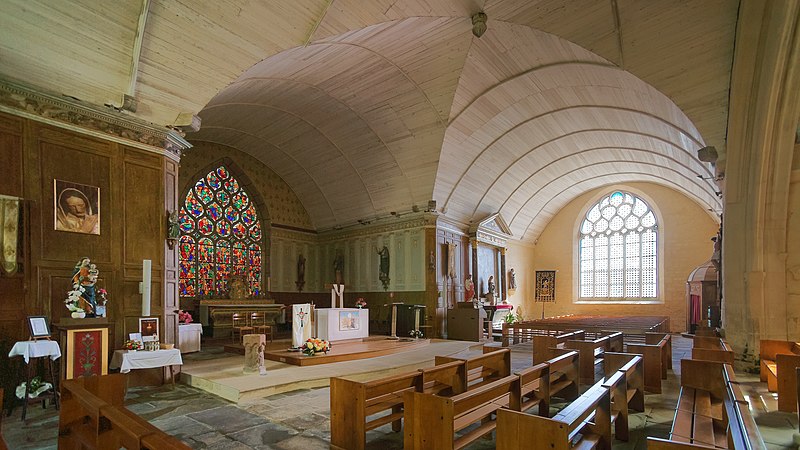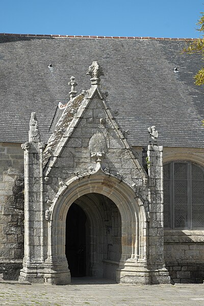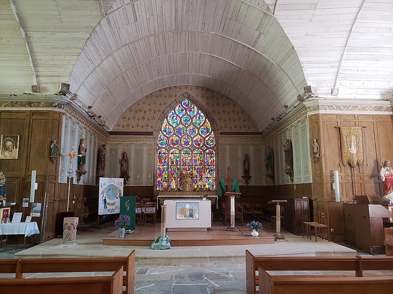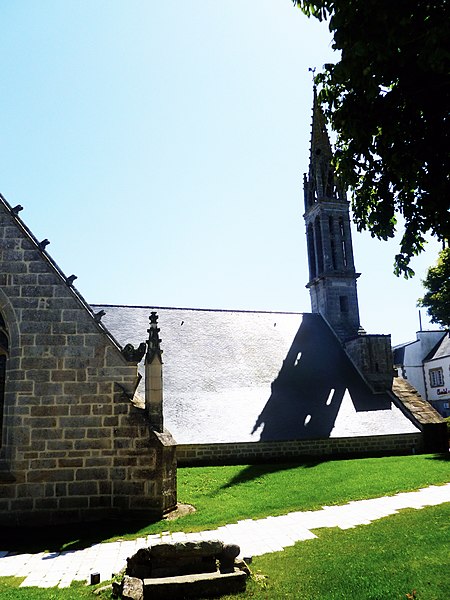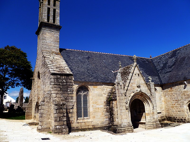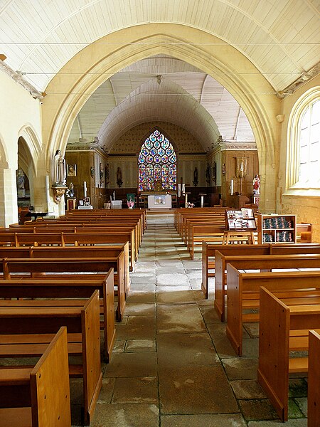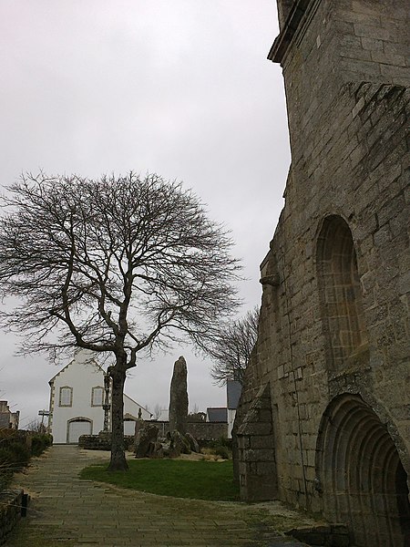 L'église Saint-Demet présente des éléments d'époques diverses. De plan en croix latine, elle comprend un chœur rectangulaire, un transept et une nef bordée d'un bas-côté. Un arc diaphragme sépare la nef — la partie la plus ancienne, datée du XIIe siècle et pourvue de cinq arcades — du transept. Les autres parties de la construction, à l'exception du clocher, remontent au début du XVIe siècle. Le grand porche est voûté d'ogives en pierre. Le clocher, reconstruit vers 1700, conserve cependant sa flèche gothique. On relève également un menhir préhistorique, des arcades du XIIIe siècle, le bas-côté nord de la fin du XIVe siècle, le transept et le chœur du XVIe siècle, un porche sud daté de 1695, une sacristie datée de 1701 et un clocheton daté de 1793 ; une fontaine et un calvaire sont attribués au XVIe siècle (?).