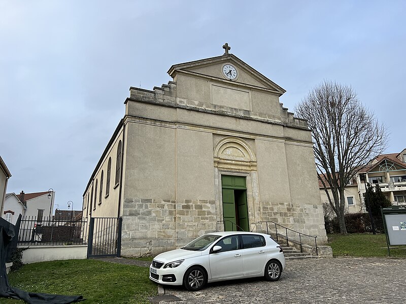L'église Saint-Denys est une église catholique paroissiale située à Arnouville, dans le Val-d'Oise. Œuvre méconnue de l'architecte néo-classique Jean-Baptiste Chaussard, elle a été achevée en 1782 et remplace une église médiévale implantée dans le parc du château. Sa reconstruction s'inscrit dans le vaste projet d'urbanisme mené par le comte Jean-Baptiste de Machault d'Arnouville, qui concernait le château, son domaine et le village. Le nouveau quartier, édifié après 1750 autour de places circulaires et de voies radiales, fut conçu par Pierre Contant d'Ivry et Jean-Michel Chevotet. L'église occupe le centre ancien d'Arnouville, près du château, sur un tertre en retrait du rond-point des Victoires ; sa façade donne sur la place, de sorte que le chevet est irrégulièrement orienté vers le nord-ouest. Implantée perpendiculairement à la déclivité, elle bloque l'axe du rond-point et explique le tracé sinueux de la rue du Ratelier. L'édifice est inscrit au titre des monuments historiques depuis l'arrêté du 12 juin 1986 et dépend aujourd'hui de la paroisse Notre-Dame-de-la-Paix d'Arnouville ; des messes dominicales anticipées y sont célébrées le second samedi du mois à 18 h.
