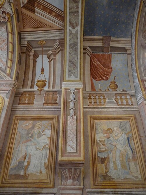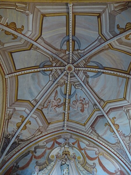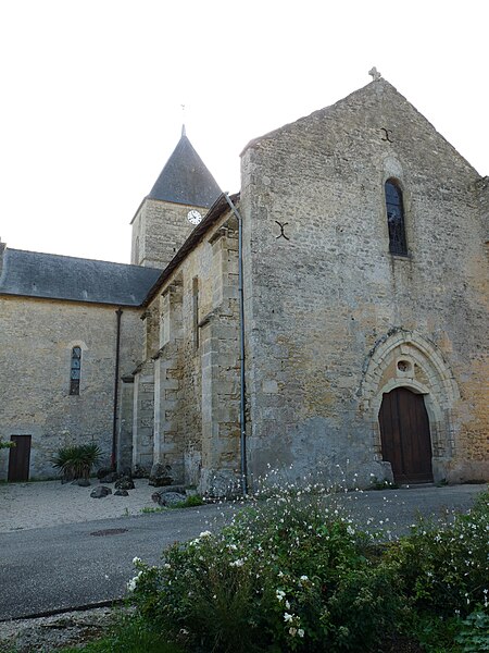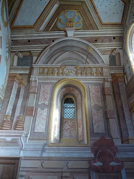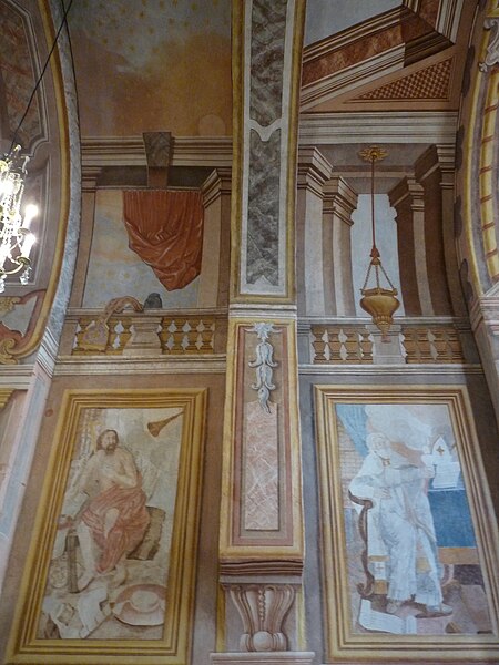 L'église Saint-Denis d’Aubigné-sur-Layon (Maine-et-Loire, Pays de la Loire) est un prieuré-cure dépendant de l'abbaye de la Moe. Fondée vers 1088 au XIe siècle, elle a été agrandie au XIIe siècle ; la nef date de la seconde moitié du XIe siècle, le chœur et le clocher du XIIe. Au XIIIe siècle, on a ajouté un transept et un voûtement Plantagenêt de style gothique. À l'origine la voûte était un plein cintre en bois recouvert de lambris ; lors des restaurations de 1895 l'architecte Martin remplaça ces lambris par une voûte en brique. Le clocher roman, de plan carré et composé de deux étages, abrite trois cloches. Celles-ci furent fondues en 1793 et de nouvelles cloches furent installées en 1857. La chapelle Saint-Jean-Baptiste se situe à droite et la chapelle de la Vierge à gauche de la nef. Le décor peint du XVIIIe siècle est attribué à Paolo Baronni ; une inscription laisse penser que la fresque fut commandée par le prieur Clément Balthazar Mesnard, et la présence de Baronni en Anjou est attestée entre 1750 et 1771 (certaines sources indiquent également 1705-1709). En 2008, une vingtaine d'inhumations mises au jour sous la place voisine ont révélé des sarcophages témoignant de l'ancien cimetière médiéval, disparu à l'époque moderne. L'édifice a été classé au titre des monuments historiques en 1993.