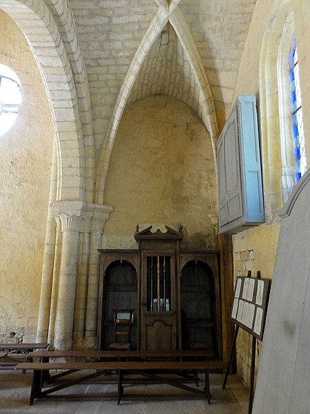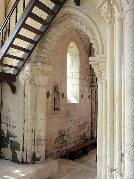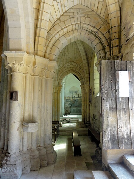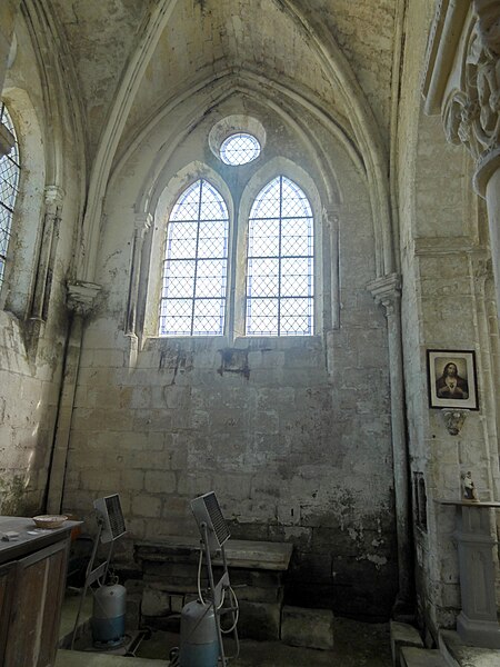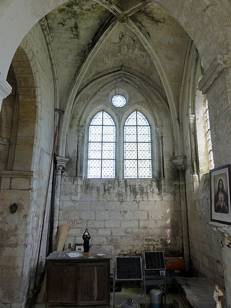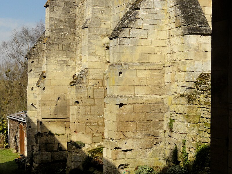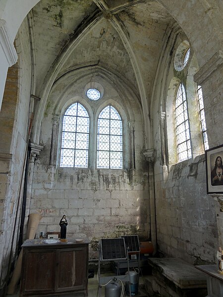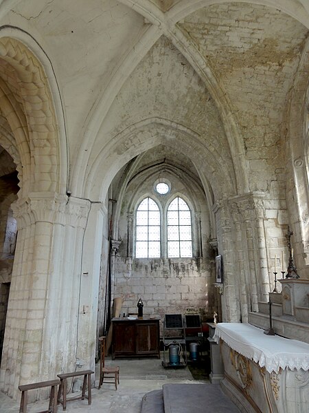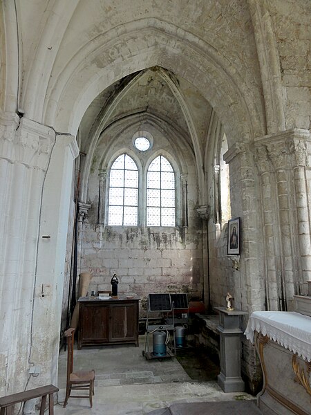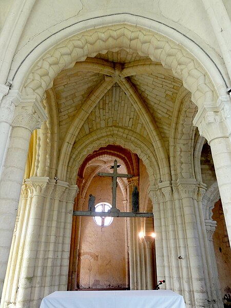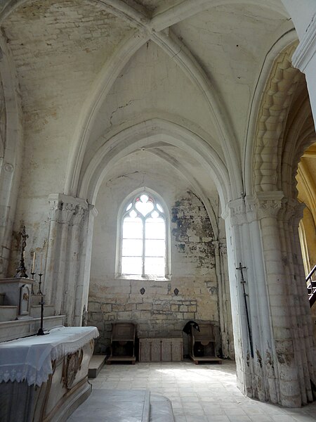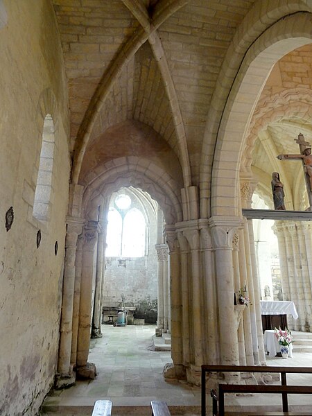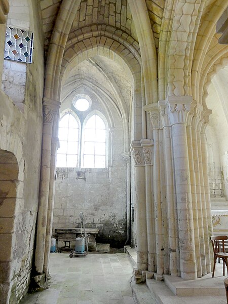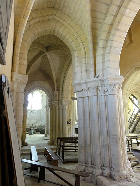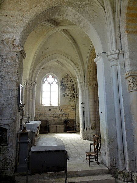L'église Saint-Denis est une église catholique paroissiale située au centre de Foulangues, dans le département de l'Oise, en région Hauts-de-France. Elle renferme probablement des élévations anciennes, notamment les parties hautes de la nef attribuées à une église antérieure des XIe–XIIe siècles, et semble avoir été largement remaniée lors d'une campagne de construction menée à partir des années 1140. L'édifice présente un roman tardif qui annonce le gothique par la qualité de la sculpture de ses chapiteaux, la composition rigoureuse de ses piles cantonnées et l'emploi précoce du voûtement d'ogives, tandis que certaines caractéristiques décoratives conservent des profils romans. Malgré ses dimensions modestes, l'église est considérée comme l'une des plus remarquables de la région. Le plan, proche du cruciforme inscrit dans un rectangle d'environ 21,10 m sur 10,75 m, comprend une nef de deux travées flanquée de bas‑côtés, un transept non saillant dont la croisée porte un clocher octogonal, un chœur d'une travée et deux chapelles latérales de dimensions identiques mais distinctes. L'ensemble est couvert de voûtes d'ogives et l'unique portail s'ouvre dans la première travée du bas‑côté sud, accessible par un escalier de cinq marches. Les murs extérieurs ne trahissent guère l'ampleur et l'ancienneté de l'architecture intérieure car ils ont été presque entièrement rebâtis à différentes époques ; seules la deuxième travée du bas‑côté nord et le croisillon nord conservent un appareil ancien en moellons. La chapelle latérale nord du chœur, de style gothique, est attribuée à la période autour de 1200 et remplace manifestement une absidiole romane dont subsistent quelques chapiteaux à l'entrée. La chapelle latérale sud et une partie du mur méridional appartiennent au style flamboyant de la première moitié du XVIe siècle et ont remplacé des élévations plus anciennes. Le clocher octogonal se rattache au groupe régional des clochers octogonaux : il a été édifié après la croisée du transept, en même temps que la chapelle nord, et présente un caractère gothique ; sa flèche de pierre a été abattue en 1842. Située légèrement en contrebas du carrefour central du village, l'église est entourée d'un mur de soutènement et ses élévations nord et ouest sont partiellement masquées par un ancien jardin en friche et la cour d'une exploitation agricole intégrant l'ancien presbytère. Les études sur l'édifice reposent essentiellement sur l'analyse archéologique et sur des comparaisons régionales ; l'intérêt pour le monument a été souligné dès le milieu du XIXe siècle et plus tard par des recherches spécialisées, qui ont débattu des phases de construction et de datation. L'église a connu un état d'abandon au XIXe siècle et des désordres graves à la fin des années 1920 ; classée monument historique par arrêté du 11 septembre 1906, elle a été sauvée in extremis grâce à l'intervention de l'association La Sauvegarde de l'art français et à la générosité d'un donateur américain, permettant une première campagne de restauration menée de 1928 à 1930 sous la direction de l'architecte en chef A. Collin, suivie d'une intervention en 1960 visant notamment l'abaissement du sol pour dégager les bases des colonnes. L'église dépend aujourd'hui de la paroisse Sainte‑Claire de Mouy et la vie liturgique y est limitée mais active. L'intérieur révèle une nef étroite de deux travées voûtées dont l'élévation comporte de larges arcades en arc brisé et un étage de murs aveugles où subsistent de petites fenêtres hautes bouchées. Les ogives et les doubleaux présentent des profils archaïques et des tailloirs simples, tandis que les chapiteaux, d'une grande variété iconographique et d'une qualité décorative notable, semblent issus d'un même atelier ou d'ateliers proches. La sculpture des chapiteaux se répartit en types reconnaissables — feuillages d'acanthe, motifs d'entrelacs et têtes monstrueuses, décors botaniques stylisés — et renvoie à des répertoires partagés avec d'autres églises de la région. Les piles cantonnées et la complexité des supports témoignent de l'architecture gothique naissante présente dans la nef, le transept et le chœur. La chapelle nord conserve un fenestrage en lancettes surmontées d'un oculus et un appareillage soigné en pierre de taille, tandis que la chapelle sud, entièrement du XVIe siècle, présente un réseau flamboyant et des ogives d'esprit tardif. Parmi le mobilier, la poutre de gloire située sous l'arc triomphal est classée au titre immeuble ; elle représente le Christ en croix accompagné d'une Vierge et d'une Marie‑Madeleine et a été datée du XVIe siècle. Un coffre en bois, classé au titre objet, date de la fin du XVIe ou du début du XVIIe siècle et porte un décor de plis de serviette, palmettes et fleurettes. La cloche en bronze unique porte une inscription rappelant son baptême en 1829 et citant les noms des parrains et marraines. L'église Saint‑Denis de Foulangues conserve ainsi un ensemble architectural et mobilier qui illustre la transition du roman tardif vers le gothique et la stratification des interventions anciennes, modernes et contemporaines qui ont façonné son apparence actuelle.