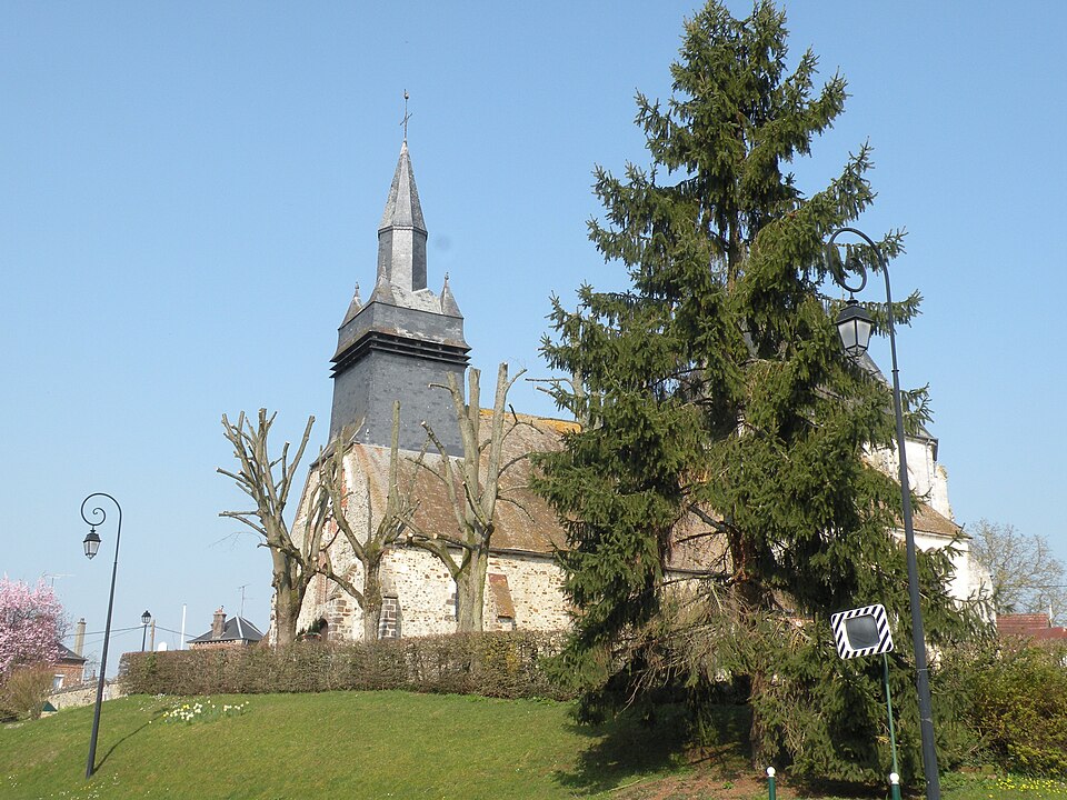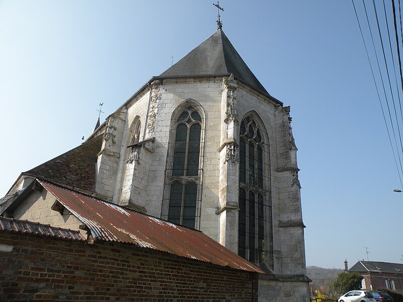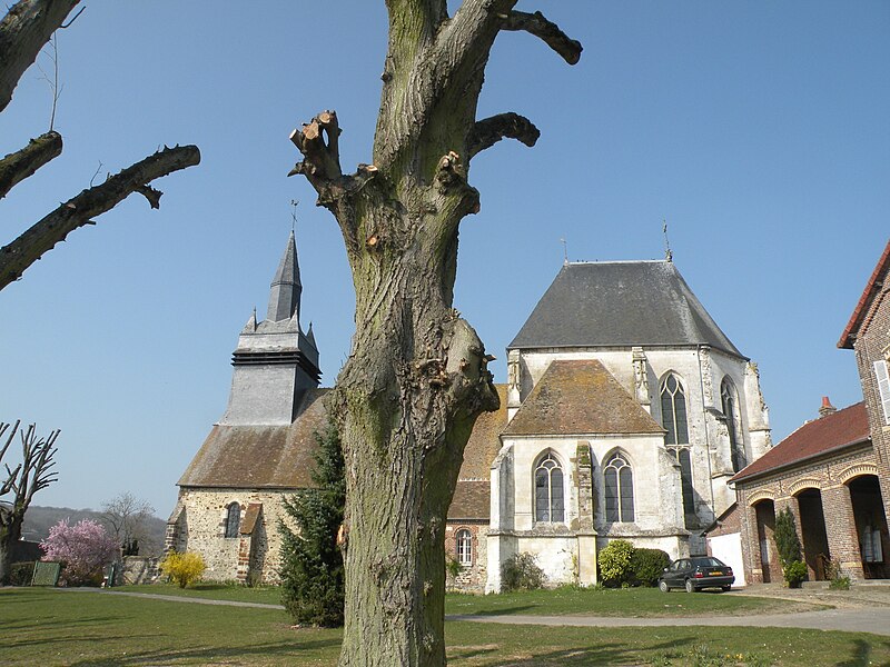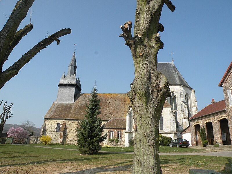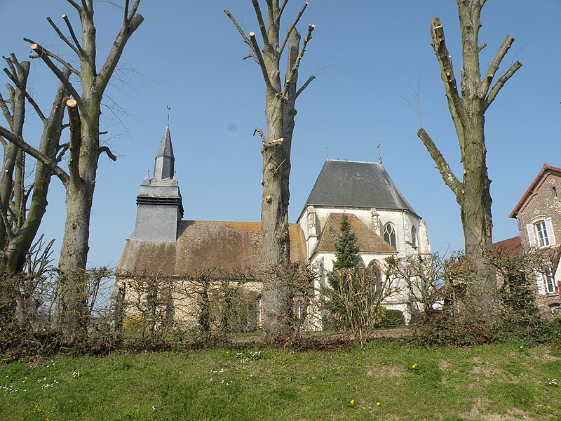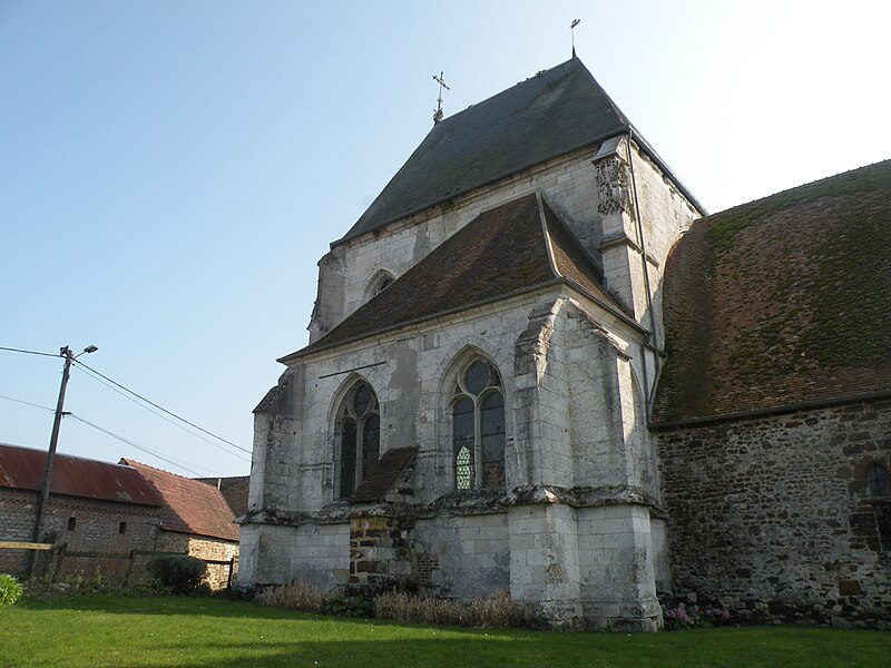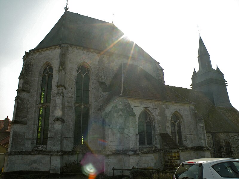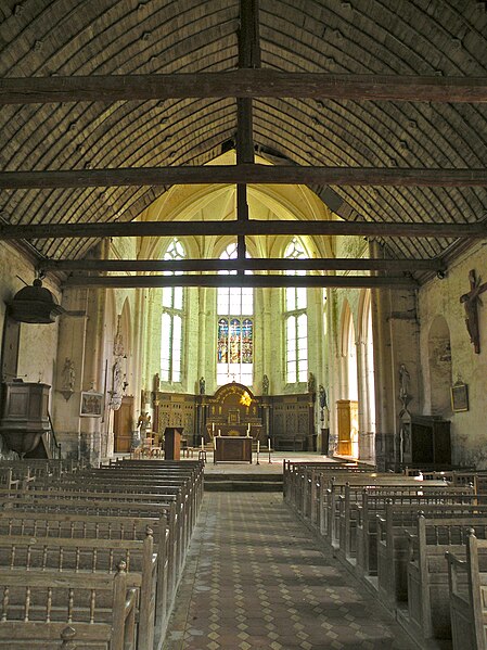 L'église Saint-Denis se trouve au centre du village d'Hodenc-en-Bray, dans l'Oise ; sa façade occidentale donne sur la RD 22 et l'édifice est légèrement en retrait de la route, accessible par un sentier. Elle jouxte au nord l'enclos de l'ancien cimetière, accessible au public et abritant le monument aux morts, et une place engazonnée borde l'église au sud ; l'ancienne école occupe l'espace au sud-est de l'abside. Paroissiale, elle dépend de la paroisse de La Trinité en Bray et de la communauté de Lachapelle-aux-Pots. Des fonts baptismaux du XIe siècle attestent la présence d'un sanctuaire antérieur au bâtiment actuel. La nef actuelle, construite au milieu du XIVe siècle, est un vaisseau unique élevé en moellons et dépourvu de bas-côtés et de voûtes, ce qui reflète une construction d'économie. Sa charpente lambrissée, remarquable, présente une carène renversée et des éléments peints ; un poinçon porte la date 1577, interprétée comme celle d'une restauration. Une rosace à douze rayons trilobés orne le mur occidental, son oculus central étant aujourd'hui occupé par une horloge, et les baies méridionales sont en plein cintre tandis que les deux fenêtres nord sont composées de lancettes recoupées par un meneau horizontal. Le chœur, plus tardif et d'un parti architectural ambitieux, a été élevé au début du XVIe siècle par la famille de Montceaux, dont les armes figurent sur les clés de voûte ; il est entièrement bâti en pierre de taille claire et se caractérise par une grande élévation et une luminosité inhabituelles pour la taille du village. Son plan est original : une travée carrée de vaisseau central précédant une abside à cinq pans, la première travée et l'abside étant couvertes par une voûte à six ogives rayonnant autour d'une clé centrale. Deux chapelles latérales, formant un faux transept, flanquent la travée droite ; chacune comporte deux travées et des voûtes ornées de liernes, de tiercerons et de clés pendantes. Les nervures pénètrent directement dans des supports sans chapiteaux visibles, les fûts cylindriques étant bagués à leur jonction avec les ogives, et la clé centrale porte les armes des Montceaux. À l'extérieur, la rusticité de la nef en moellons contraste avec la qualité soignée du chœur en pierre de taille ; la façade occidentale et la lourde toiture ont été jugées maladroites par certains auteurs, tandis que le chœur, sobre mais bien exécuté, présente des contreforts et des pinacles plaqués aux angles de l'abside. Le clocher en charpente, placé à califourchon au pignon occidental, est couvert d'ardoise et présente une composition en pyramide surbaissée cantonnée de pyramidons, surmontée d'une tourelle octogonale et d'une fine flèche. Le porche du portail latéral nord, ample et construit avec de fortes poutres de réemploi, ouvre directement sur l'ancien cimetière. L'édifice a été classé au titre des monuments historiques par arrêté en 1995 ; jusqu'à cette époque le chœur avait vraisemblablement peu été remanié et l'église n'a connu que quelques réparations concentrées surtout sur les toitures. Le mobilier comporte plusieurs éléments de qualité : dix objets sont classés au titre mobilier, auxquels s'ajoutent trois verrières du XVIe siècle et un plat de quête en terre cuite daté de 1604, désormais conservé au trésor de la cathédrale Saint-Pierre de Beauvais. Les trois verrières du XVIe siècle, posées peu après l'achèvement du chœur, ont été restaurées entre 1989 et 1992 ; elles représentent la Crucifixion en axe d'abside, le Couronnement de la Vierge à la chapelle nord et l'Adoration des bergers à la chapelle sud. Le mobilier comprend encore une statue en pierre de la fin du XVIIe siècle identifiée alternativement comme saint Roch ou saint Lucien, plusieurs statues en bois polychrome ou doré (Vierge à l'Enfant des XVIIIe et XVIe/XVIIe siècles, saint Denis et sainte Catherine du dernier quart du XVe siècle), les fonts baptismaux archaïques du XIe siècle sculptés dans un bloc de calcaire, les dalles funéraires de membres de la famille de Monceaux et divers éléments civils comme un coffre de fabrique en chêne du XVIIe siècle et une cloche en bronze datée de 1641. L'ensemble fait de Saint-Denis un édifice d'une belle ampleur et d'une qualité architecturale marquée, où se lit la coexistence d'une nef rurale sobre et d'un chœur flamboyant original dont la valeur mérite une plus large connaissance.