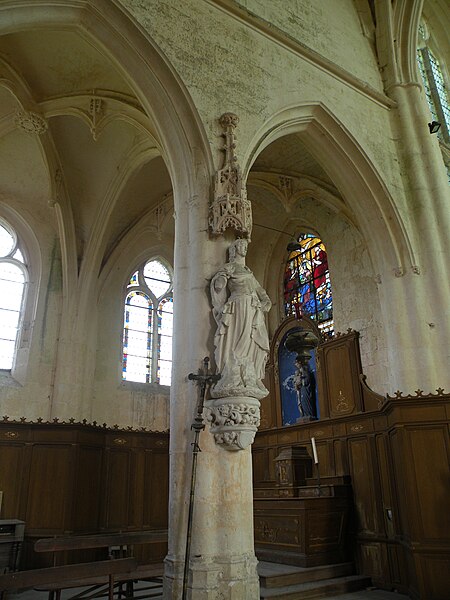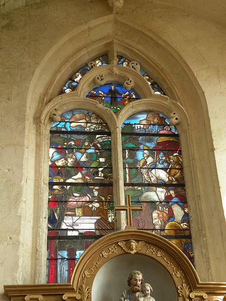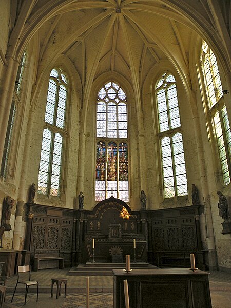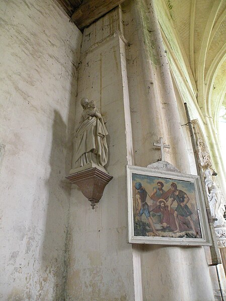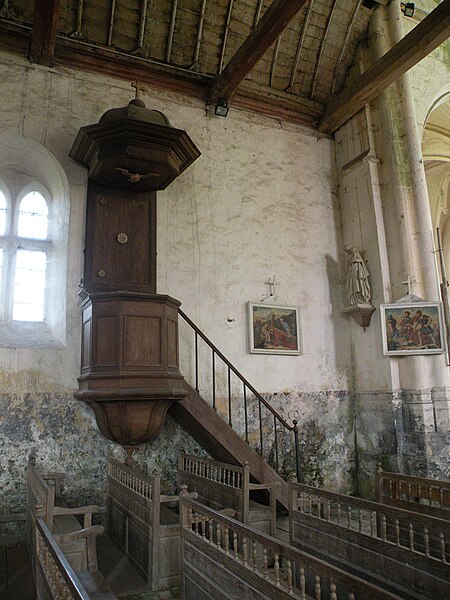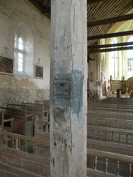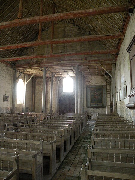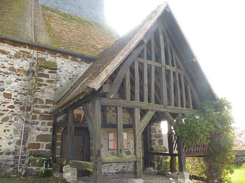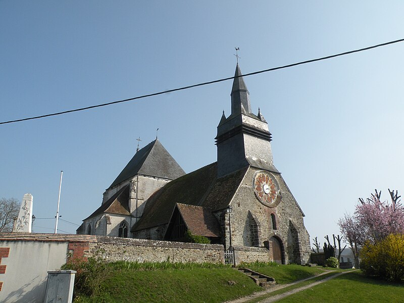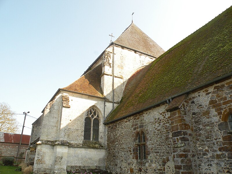 L'église Saint-Denis se trouve au centre du village d'Hodenc-en-Bray, dans l'Oise ; sa façade occidentale donne sur la RD 22 et l'édifice est légèrement en retrait de la route, accessible par un sentier. Elle jouxte au nord l'enclos de l'ancien cimetière, accessible au public et abritant le monument aux morts, et une place engazonnée borde l'église au sud ; l'ancienne école occupe l'espace au sud-est de l'abside. Paroissiale, elle dépend de la paroisse de La Trinité en Bray et de la communauté de Lachapelle-aux-Pots. Des fonts baptismaux du XIe siècle attestent la présence d'un sanctuaire antérieur au bâtiment actuel. La nef actuelle, construite au milieu du XIVe siècle, est un vaisseau unique élevé en moellons et dépourvu de bas-côtés et de voûtes, ce qui reflète une construction d'économie. Sa charpente lambrissée, remarquable, présente une carène renversée et des éléments peints ; un poinçon porte la date 1577, interprétée comme celle d'une restauration. Une rosace à douze rayons trilobés orne le mur occidental, son oculus central étant aujourd'hui occupé par une horloge, et les baies méridionales sont en plein cintre tandis que les deux fenêtres nord sont composées de lancettes recoupées par un meneau horizontal. Le chœur, plus tardif et d'un parti architectural ambitieux, a été élevé au début du XVIe siècle par la famille de Montceaux, dont les armes figurent sur les clés de voûte ; il est entièrement bâti en pierre de taille claire et se caractérise par une grande élévation et une luminosité inhabituelles pour la taille du village. Son plan est original : une travée carrée de vaisseau central précédant une abside à cinq pans, la première travée et l'abside étant couvertes par une voûte à six ogives rayonnant autour d'une clé centrale. Deux chapelles latérales, formant un faux transept, flanquent la travée droite ; chacune comporte deux travées et des voûtes ornées de liernes, de tiercerons et de clés pendantes. Les nervures pénètrent directement dans des supports sans chapiteaux visibles, les fûts cylindriques étant bagués à leur jonction avec les ogives, et la clé centrale porte les armes des Montceaux. À l'extérieur, la rusticité de la nef en moellons contraste avec la qualité soignée du chœur en pierre de taille ; la façade occidentale et la lourde toiture ont été jugées maladroites par certains auteurs, tandis que le chœur, sobre mais bien exécuté, présente des contreforts et des pinacles plaqués aux angles de l'abside. Le clocher en charpente, placé à califourchon au pignon occidental, est couvert d'ardoise et présente une composition en pyramide surbaissée cantonnée de pyramidons, surmontée d'une tourelle octogonale et d'une fine flèche. Le porche du portail latéral nord, ample et construit avec de fortes poutres de réemploi, ouvre directement sur l'ancien cimetière. L'édifice a été classé au titre des monuments historiques par arrêté en 1995 ; jusqu'à cette époque le chœur avait vraisemblablement peu été remanié et l'église n'a connu que quelques réparations concentrées surtout sur les toitures. Le mobilier comporte plusieurs éléments de qualité : dix objets sont classés au titre mobilier, auxquels s'ajoutent trois verrières du XVIe siècle et un plat de quête en terre cuite daté de 1604, désormais conservé au trésor de la cathédrale Saint-Pierre de Beauvais. Les trois verrières du XVIe siècle, posées peu après l'achèvement du chœur, ont été restaurées entre 1989 et 1992 ; elles représentent la Crucifixion en axe d'abside, le Couronnement de la Vierge à la chapelle nord et l'Adoration des bergers à la chapelle sud. Le mobilier comprend encore une statue en pierre de la fin du XVIIe siècle identifiée alternativement comme saint Roch ou saint Lucien, plusieurs statues en bois polychrome ou doré (Vierge à l'Enfant des XVIIIe et XVIe/XVIIe siècles, saint Denis et sainte Catherine du dernier quart du XVe siècle), les fonts baptismaux archaïques du XIe siècle sculptés dans un bloc de calcaire, les dalles funéraires de membres de la famille de Monceaux et divers éléments civils comme un coffre de fabrique en chêne du XVIIe siècle et une cloche en bronze datée de 1641. L'ensemble fait de Saint-Denis un édifice d'une belle ampleur et d'une qualité architecturale marquée, où se lit la coexistence d'une nef rurale sobre et d'un chœur flamboyant original dont la valeur mérite une plus large connaissance.