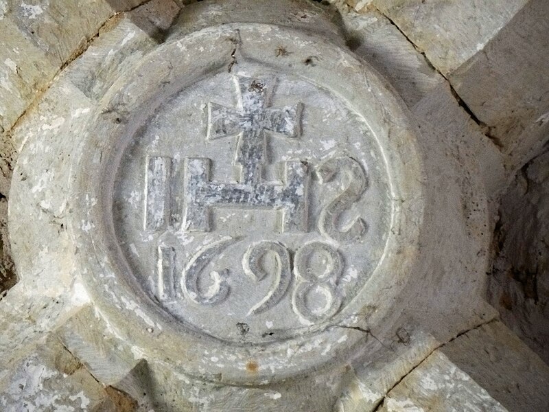 La clé de voûte porte cette date, indiquant des réparations après un incendie.