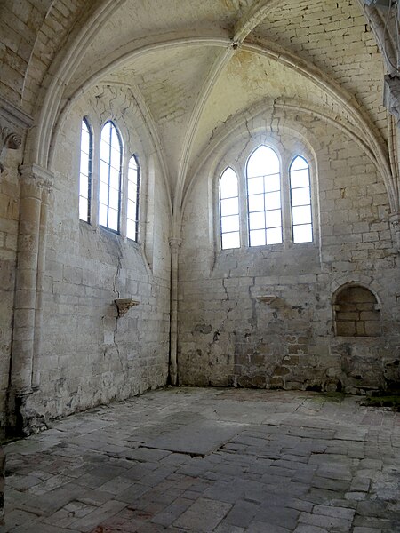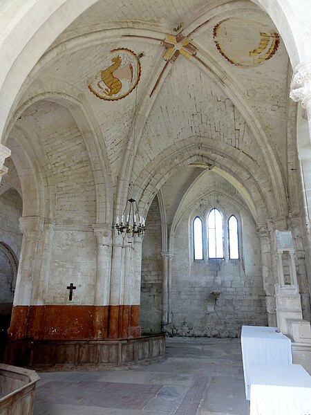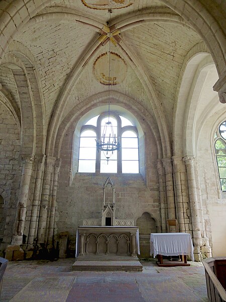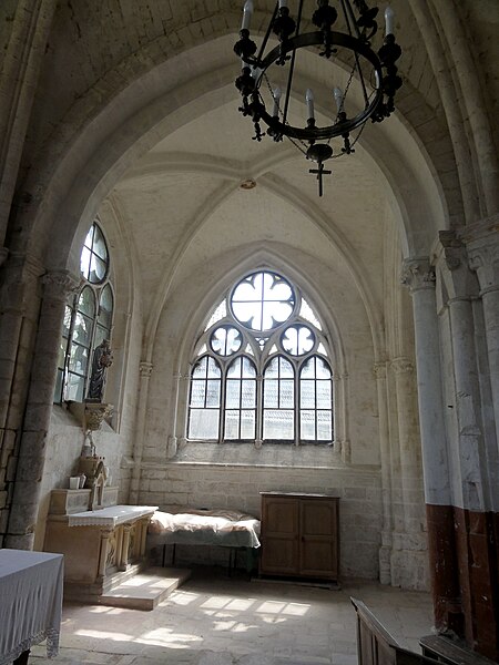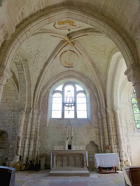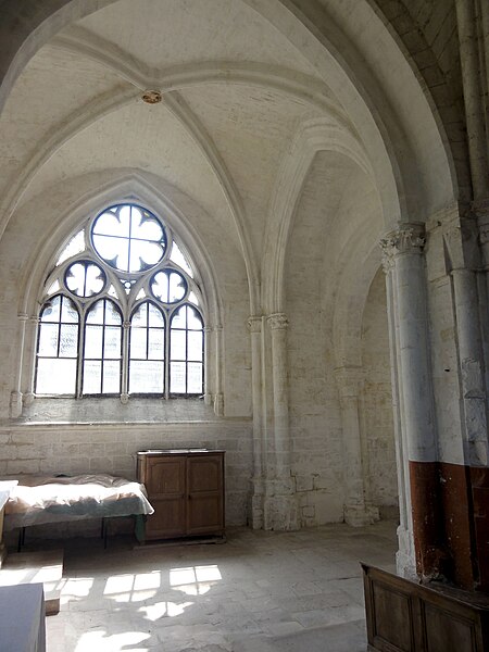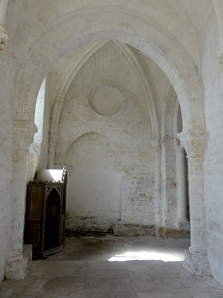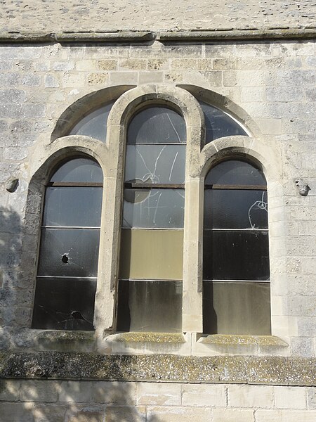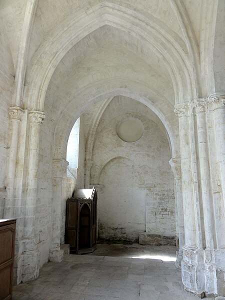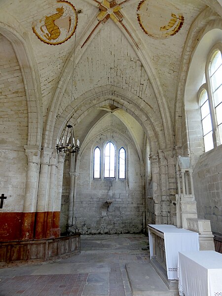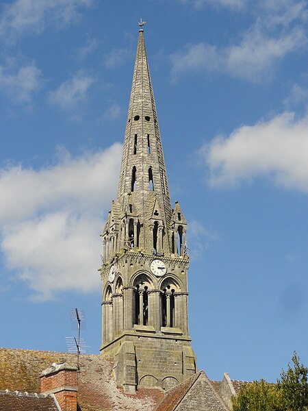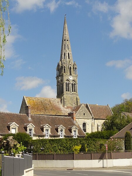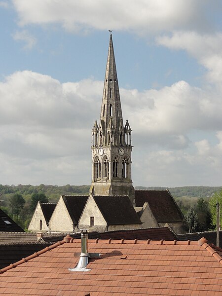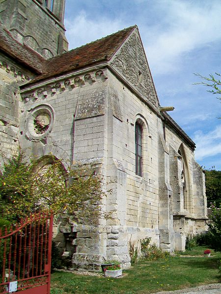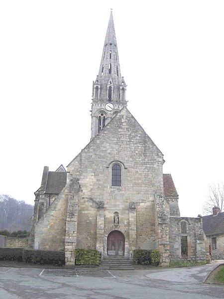 L'église Saint-Denis est une église catholique située à Mogneville, dans l'Oise. Elle est majoritairement de style roman, sauf les chapelles latérales et la flèche, et ses éléments les plus anciens datent du début du XIIe siècle. Les vestiges les plus anciens comprennent les fonts baptismaux et le premier étage du clocher ; le transept et le chœur correspondent essentiellement aux années 1130-1140, la nef et les bas-côtés aux années 1150-1160, ces derniers ayant été supprimés après 1764. Les parties orientales conservent quatre voûtes d'ogives antérieures à 1150, plaçant l'édifice dans un groupe d'une quarantaine d'églises similaires dans le département. Des demi-travées subsistent des anciennes absidioles en cul-de-four, remplacées par des chapelles carrées gothiques au XIIIe siècle. La nef se caractérise par une importante hauteur et une corniche beauvaisine, tandis que l'intérieur reste sobre. C'est surtout le clocher et son élégante flèche octogonale en pierre, largement ajourée et inspirée de la tour sud de la cathédrale de Senlis, qui font la renommée de l'église. Le second étage du clocher, de la seconde moitié du XIIe siècle, adopte déjà un langage gothique avec de hautes baies flanquées de nombreuses colonnettes. La flèche, datée de la seconde moitié du XIIIe siècle, est richement décorée par quatre lucarnes et quatre lanternons, dont trois ne datent toutefois que de la fin du XIXe siècle. Le clocher a été classé monument historique dès la liste de 1862 et l'ensemble de l'église a été classé par arrêté du 24 août 1937. L'édifice menaçait ruine depuis longtemps mais a été restauré entre les années 1980 et 1990 ; il est aujourd'hui en bon état mais n'est plus utilisé pour les messes dominicales par la paroisse de Liancourt. L'église occupe le centre du village, près d'une petite place à l'angle des rues Paul-Faure et de l'Église ; sa façade occidentale donne sur la place et le chevet est orienté légèrement vers le nord-est. Les abords sont contraints : l'emprise de l'ancien bas-côté sud, propriété municipale, et l'ancien cimetière limitent le recul, le côté méridional donne sur un terrain privé correspondant à l'ancien presbytère, et la chapelle latérale sud est en partie inaccessible du fait d'une sacristie ruinée envahie par la végétation. L'édifice se compose d'une courte nef de deux travées sans bas-côtés, d'un transept dont la croisée correspond à la base du clocher, d'un chœur carré à chevet plat et de deux chapelles latérales carrées. Des demi-travées voûtées en berceau précèdent le chœur et les chapelles ; le transept, le chœur et les chapelles sont voûtés d'ogives tandis que la nef est couverte par une charpente lambrissée en carène renversée. Les maçonneries sont en pierre calcaire de l'Oise et les couvertures en tuiles plates ; la corniche beauvaisine, présente sur la nef et les croisillons, marque stylistiquement le XIIe siècle. Le clocher carré, épaulé par des contreforts plats et scandé par glacis, présente au premier étage des arcatures et colonnettes torsadées du début du XIIe siècle, puis un deuxième étage plus élevé et gothique où chaque baie s'ouvre sous une double archivolte en tiers-point portée par de fines colonnettes. Des trompes assurent la transition du plan carré au plan octogonal de la flèche, laquelle, très ajourée pour alléger la structure, mesure 9 m de haut, atteint 39 m au sommet et porte lucarnes, lanternons, sculptures de têtes monstrueuses et chapiteaux finement travaillés ; un coq a été posé au sommet lors des restaurations. La façade occidentale, sobre et attribuée au XIVe siècle, conserve un portail encadré de contreforts plats romans et une niche abritant une Vierge à l'Enfant mutilée, probablement du XIVe siècle. À l'intérieur, la nef présente un dallage ancien, des peintures murales fragmentaires au revers de la façade et une impression de grande hauteur malgré la courte profondeur ; les arcades vers les bas-côtés sont bouchées. La croisée du transept, sous le clocher, affiche quatre arcades en tiers-point et une voûte d'ogives au profil d'un gros tore, les piles et chapiteaux traduisant plusieurs campagnes de reprise. Croisillons et chœur mêlent éléments progressistes et archaïsants : ogives, formerets, chapiteaux à feuilles plates et vestiges des absidioles en cul-de-four. La chapelle nord, simple et quelque peu désaxée, communique avec une demi-travée résiduelle ; la chapelle sud, de style rayonnant, offre des fenêtres tripartites élégantes, des clés de voûte peintes et des chapiteaux richement sculptés. Parmi le mobilier, les fonts baptismaux romans et un bénitier attribués à la première moitié du XIIe siècle sont classés, ainsi que deux peintures murales circulaires du XIVe siècle représentant des animaux du tétramorphe, l'une presque effacée et l'autre encore lisible ; deux dalles funéraires du chœur, dont l'une porte la date 1635, ont été largement vandalisées. La cloche conservée, baptisée « Marguerite-Antoinette » et bénite en 1790, pèse environ 800 kg, porte une inscription rappelant ses donateurs et fondeurs, et sonne aujourd'hui les heures. L'église a été entretenue successivement par la paroisse puis par la commune, a subi de nombreuses campagnes de restauration aux XIXe et XXe siècles et a fait l'objet d'une restauration d'envergure menée entre 1983 et 1994 (toitures, maçonneries, drainage, reprises intérieures et protection des décors), mais elle n'a qu'une vie spirituelle occasionnelle au sein de la paroisse de Liancourt.
