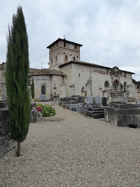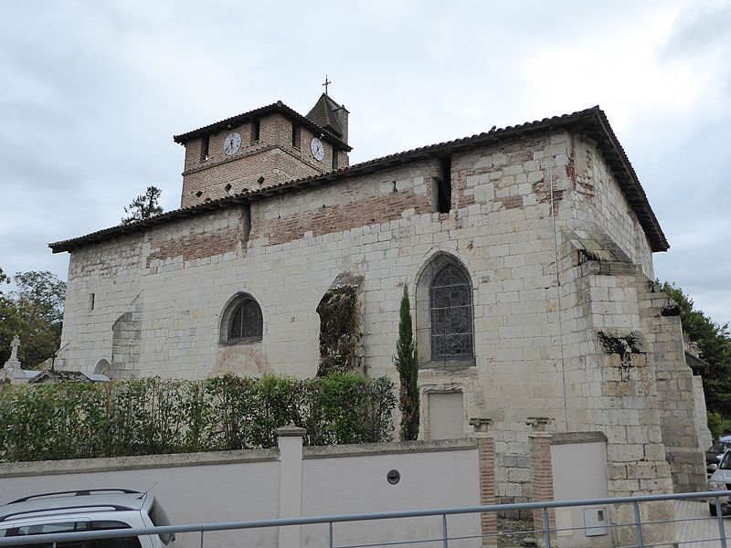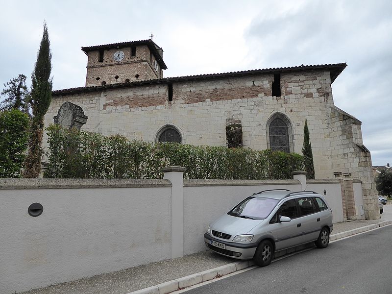 L'église, déjà existante au XIe siècle, fut donnée aux moines de Moissac et consacrée en 1052. Vers 1135, l'abbaye devint propriétaire définitif des biens dépendant de l'église de Pommevic, laquelle fut érigée au XIIIe siècle en chef-lieu de prieuré. L'édifice actuel réunit des éléments de différentes époques. Le plus ancien est le chœur : son abside est voûtée en cul-de-four et une petite travée de chœur, délimitée par un doubleau et ses dosserets, est couverte d'un berceau légèrement brisé; ces voûtes appartiennent à la première construction. Les deux arcades de la travée du clocher présentent des chapiteaux sculptés de feuillages et d'animaux. Le mur de clôture sud date de l'édifice du XIe siècle, tandis que le mur nord a été remplacé par deux grandes arcades qui divisent la partie inférieure de la nef en deux travées. D'après des travaux historiques, la nef a été partiellement reconstruite et un second vaisseau lui a été ajouté au début du XVIe siècle. Le clocher, tour carrée du début du XIVe siècle, fut fortifié au cours des guerres de Religion. Les vitraux, signés Saint-Blanca (1887, 1888) et Henri Feur (1896), ont été datés par des études historiques.