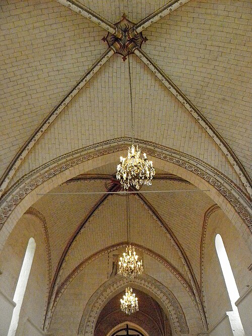 L'église Saint-Denis, située dans le bourg de Pontigné, commune de Baugé-en-Anjou, est une église catholique classée au titre des monuments historiques en 1862. La base de la nef remonte au XIe siècle. La croisée et le transept ont été édifiés à la fin du deuxième quart ou au début du troisième quart du XIIe siècle, puis la nef a été reprise à la fin du troisième quart ou au début du quatrième quart du XIIe siècle. Le chœur primitif du XIIe siècle a été détruit et reconstruit dans la première moitié du XIIIe siècle. Des peintures murales datées du milieu du XIIIe siècle et du XVe siècle subsistent dans l'édifice. En 1708, un grand autel-retable, portant cette date, a été réalisé dans le chœur pour en soutenir la voûte. Des restaurations ont été menées au cours de la seconde moitié du XIXe siècle. L'église présente une façade, un portail, une nef, un transept, un chœur et un clocher tors qui caractérisent son architecture et témoignent des différentes phases de construction et de restauration.