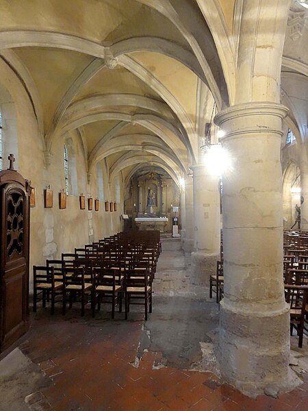 L'église Saint-Denis du Thillay (Val-d'Oise) est mentionnée pour la première fois en 1273. L'abbaye de Saint-Denis y avait acquis des droits de champart en 1248 et des cens en 1251, mais, malgré ces liens anciens, elle n'est vraisemblablement pas la fondatrice de la paroisse ; depuis le XIIIe siècle les pouillés donnent la collature au diocèse de Paris. L'édifice actuel est en grande partie du XVIe siècle et illustre la reconstruction tardive engagée après la Guerre de Cent Ans. Une première dédicace est mentionnée en 1545 et une seconde en 1583, ce qui pourrait traduire l'achèvement différé du voûtement d'ogives. Les clés de voûte pendantes, sculptées de motifs de la Renaissance, attestent ce chantier du XVIe siècle et constituent l'essentiel du décor travaillé de l'église. La chapelle seigneuriale, dédiée à saint Nicolas, fut élevée par Nicolas Girard et occupe le flanc sud des dernières travées de la nef. L'ensemble est jugé homogène et d'une facture simple, avec un plan dissymétrique caractérisé par un seul bas-côté au nord et une courte chapelle au sud. À l'extérieur, la façade occidentale a été reprise à une époque indéterminée et la toiture de la nef et du bas-côté a fait l'objet d'une réfection dont le devis a été approuvé par la préfecture en 1838. Au XIXe siècle, des lambris ont été posés dans la chapelle seigneuriale, la tribune signalée comme vétuste en 1863 a été supprimée, et l'église a été dégagée des constructions mitoyennes en 1874. En 1876 les anciens vitraux furent déposés et remplacés par de nouvelles verrières exécutées par des peintres verriers de Beauvais. La cloche portant l'inscription «Cloche fondue en 1793, et bénite par le Citoyen François Vigne, Curé» a survécu aux événements révolutionnaires. Sous le Concordat de 1801 la paroisse passa dans le diocèse de Versailles, puis, après la création du diocèse de Pontoise en 1966, elle y fut rattachée ; l'église a par ailleurs été inscrite au titre des monuments historiques le 5 novembre 1965. On note également un caveau creusé entre la nef et la deuxième travée de la chapelle sud. La paroisse fait aujourd'hui partie d'un regroupement avec Fontenay-en-Parisis, Goussainville et Vaud'herland, et les messes dominicales y sont en principe célébrées le dimanche matin à 9 h 30. L'édifice, par son architecture et son mobilier ancien, demeure un témoignage notable de l'évolution religieuse et architecturale du pays de France.