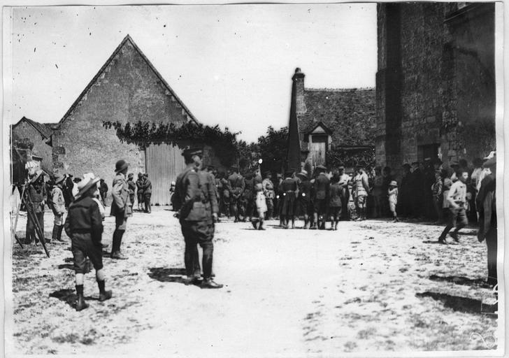 La paroisse, mentionnée dès le VIIe siècle, a appartenu successivement à l'abbaye de Saint-Denis puis à celle de la Trinité de Vendôme. L'église a été entièrement reconstruite en 1840 par l'architecte Marganne. L'édifice, de style classique, se compose d'une nef flanquée de deux bas-côtés. Seul le clocher subsiste de l'église précédente. La tour carrée, datée du début du XIIIe siècle, est cantonnée de contreforts et percée d'une baie au niveau du beffroi, et elle est surmontée d'une flèche octogonale du XIVe siècle. Au rez-de-chaussée se trouve une petite salle basse voûtée d'ogives, située sous le clocher. Dans cette pièce ont été découvertes une peinture murale à la détrempe représentant l'Annonciation ainsi que d'autres décors peints. Ce décor pourrait dater des années 1300.