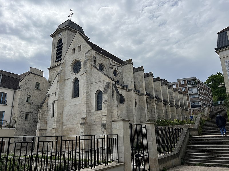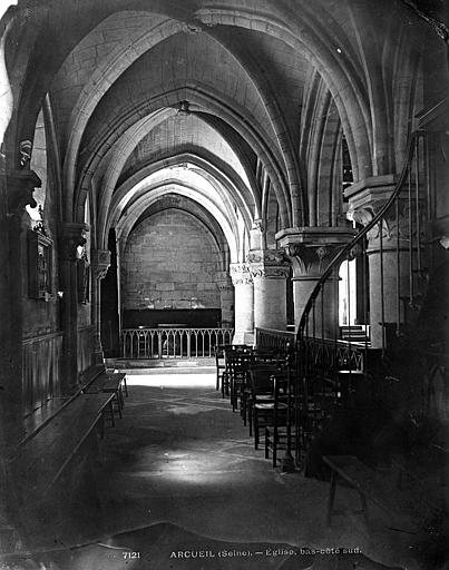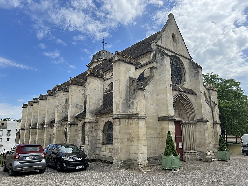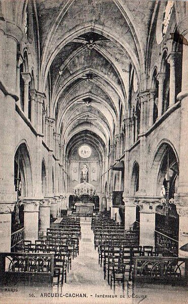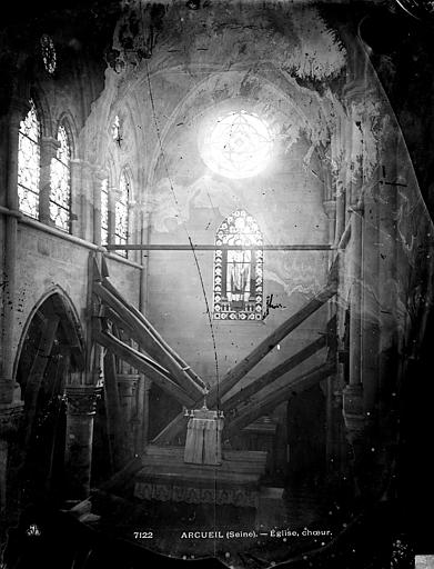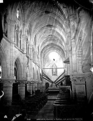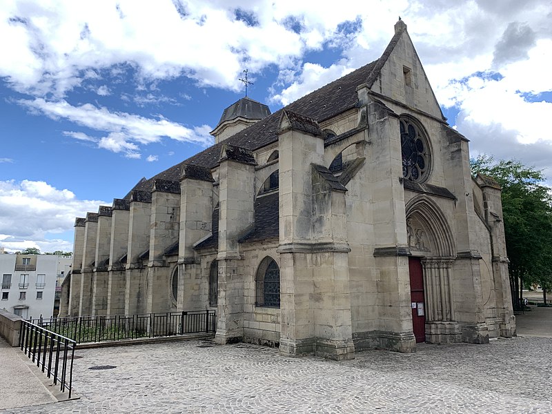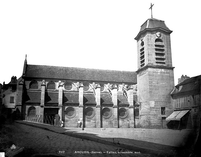 L'église Saint-Denys est un édifice catholique consacré au martyr saint Denis, situé au 32 rue Émile Raspail à Arcueil (Val-de-Marne) et rattaché au diocèse de Créteil. Une mention de 1119 signale qu'un édifice religieux de la paroisse fut donné à l'abbaye de Saint-Denis par l'évêque de Paris Gilbert. L'édifice actuel, caractéristique du premier art gothique en Île-de-France, a été édifié à la fin du XIIe et au début du XIIIe siècle. Sa construction s'est déroulée en plusieurs campagnes : le chœur est daté vers 1220-1230 et la nef vers 1240-1250. Certaines travées ont été reprises au XVIe siècle et les travées occidentales ont été élevées au milieu du XVIIIe siècle. La tour-clocher actuelle paraît avoir été construite à la fin du XVIIe siècle et le clocher est attribué à l'architecte Germain Boffrand. L'édifice a connu de nombreuses restaurations du XIXe siècle jusqu'aux années 1990, dont plusieurs campagnes documentées par des devis. Parmi celles-ci figurent un devis de 1828 par l'architecte communal Ulysse Gravigny, un devis de 1840 par Auguste Molinos accompagné de travaux vers 1842-1843 et d'un classement signalé en 1850, des travaux importants entre 1861 et 1864 sous l'architecte Naissant exécutés en maçonnerie par Eugène Lavenant, le grattage confié à Léon Picard et le remplacement des vitraux de la nef par Chauvet en 1866. Ces remaniements, entrepris par le conseil de fabrique sans l'accord de la Commission des Monuments historiques, entraînèrent le déclassement de l'église en 1878. En 1886 l'édifice menaçait ruine; après de nouvelles réparations sous la direction d'Ulysse Gravigny entre 1892 et 1902, il fut reclassé par décret le 20 juillet 1908. D'autres travaux eurent lieu en 1927 et la dernière restauration majeure connue date de 1997-1998. Selon les sources, la date de classement au titre des monuments historiques varie (1850 ou 1862), ce qui reflète des mentions divergentes dans les archives. Lors de fouilles archéologiques menées en 2012-2013, les fondations du bas-côté nord datées des XIIIe–XIVe siècles ont été mises au jour; elles recoupent des sépultures du haut Moyen Âge présentant une orientation différente de celle de l'église du XIIe–XIIIe siècle. Le plan de l'édifice est simple, avec transept non saillant et chevet plat, et l'intérieur est éclairé par des vitraux néo-gothiques. Les différentes façades, la nef, les bas-côtés et le chœur ont subi des modifications successives au gré des campagnes de restauration.