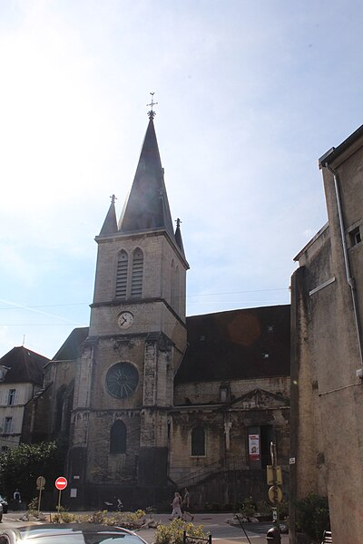 L'église Saint-Désiré, située à Lons-le-Saunier (Jura), correspond à l'une des plus anciennes communautés chrétiennes du département et figure parmi les premières églises romanes du Jura. L'édifice conserve des parties d'origine, notamment une crypte de la première moitié du XIe siècle, tandis que l'église elle-même date du XIIe siècle. Selon la tradition, une première église aurait existé au IVe siècle et saint Désiré y serait mort en 414 ; la première mention documentaire remonte toutefois à 1083, quand Thibert, vicomte de Lons, céda ses droits à Bernard, abbé de Baume. Une bulle du pape Eugène III concerne le monastère de Lons, prieuré bénédictin dépendant de Baume. Aucun document des XIIIe, XIVe et XVe siècles ne signale de travaux, mais une fraternité paroissiale s'établit au XVe siècle et revendique la propriété de l'église en 1474. Les prieurs Claude du Pin (1484-1502) puis Jean Sangler firent bâtir les chapelles encadrant le porche, aujourd'hui disparues. Des incendies en 1510 et 1536 causèrent des dégâts importants. En 1595, la ville fut prise et incendiée par les troupes d'Henri IV : la charpente brûla, le chœur fut très endommagé et utilisé comme écurie, et le clocher de la croisée fut détruit. La reconstruction du chœur fut engagée sous le prieur Georges d'Abbans (1592-1599) et achevée sous Antoine de Grivel (1625-1634), qui fit poser les stalles. En 1604 fut entreprise la reconstruction d'un clocher au-dessus du croisillon nord ; les travaux s'arrêtèrent puis reprirent en 1672 pour l'élévation de la flèche. La nef fut voûtée après l'incendie de 1624 et des chapelles latérales datent des XVe et XVIIe siècles. Pendant la Révolution, le clocher fut arasé au niveau du toit en mars 1795 ; en 1809 on démolit la première travée de la nef et les deux chapelles placées de part et d'autre du porche pour faciliter l'accès à la préfecture établie dans les bâtiments du prieuré. En 1844 la sacristie voûtée au sud du chœur fut supprimée pour aménager un petit grenier sous la toiture ; en 1852 le mur occidental fut repris, le sol de la nef abaissé et les chapelles occidentales du bas-côté sud ouvertes, l'une accueillant une tribune pour le préfet. Sous le curé Blanche, en 1878, le clocher fut reconstruit et les murs badigeonnés, badigeon ensuite enlevé ; le clocher est également mentionné comme reconstruit en 1880 et, vers 1900, on ouvrit un portail néo-roman à l'entrée occidentale. À partir de 1931, des travaux de restauration furent entrepris à l'initiative de l'abbé Richon sous la surveillance de l'architecte des Monuments historiques Julien Polti. La crypte, qui abrite dans son abside le sarcophage de saint Désiré, est classée au titre des monuments historiques depuis le 20 juillet 1908 ; le reste de l'église est inscrit depuis le 26 octobre 1927.