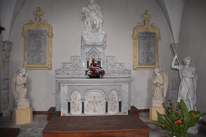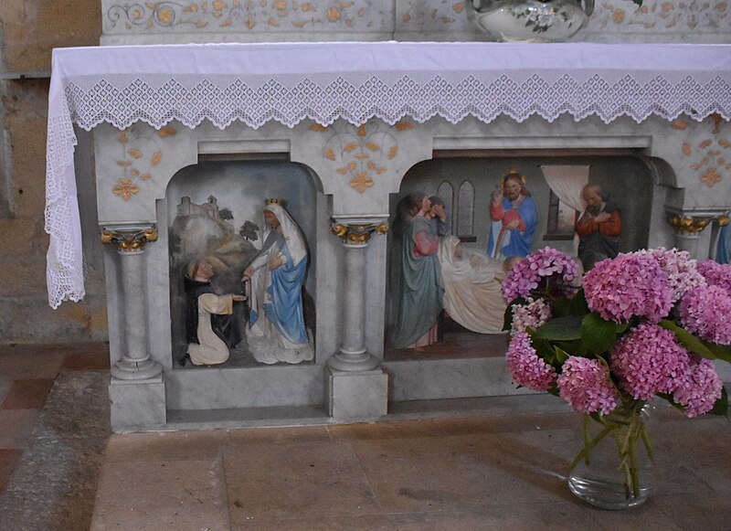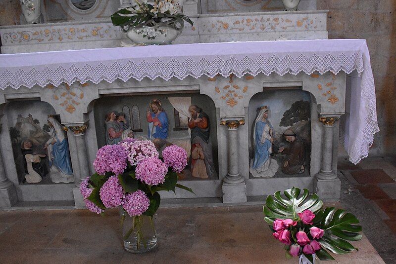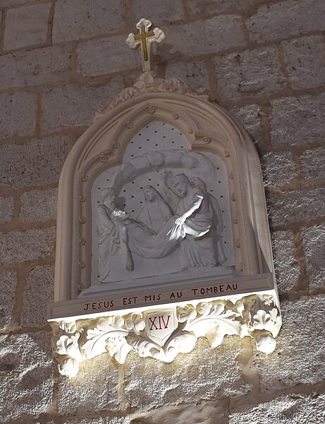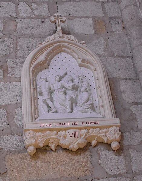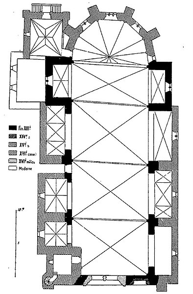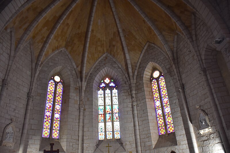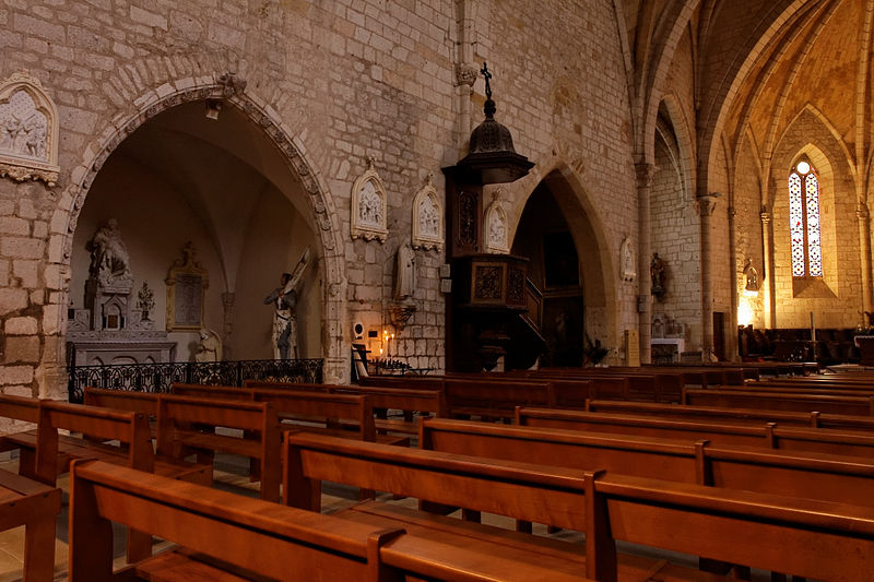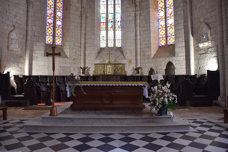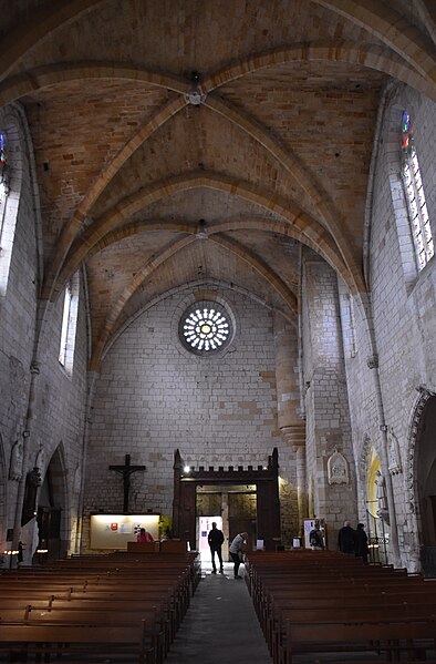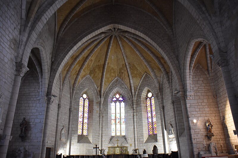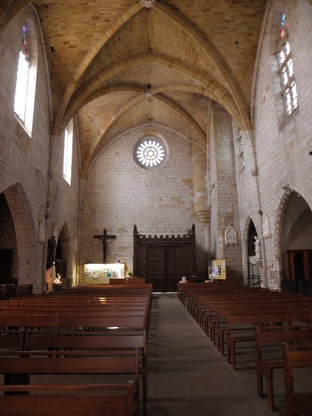 L'église Saint-Dominique est une église catholique située à Monpazier, dans le département de la Dordogne. Après la mort d'Alphonse de Poitiers, les changements de souveraineté liés aux traités du XIIIe siècle aboutissent, par un paréage conclu en 1285 avec les barons de Biron, à la fondation de la bastide de Monpazier. Pour favoriser son développement, la nouvelle ville reçoit une charte accordant aux habitants des statuts particuliers ; initialement dotée de deux bayles, elle n'en conserve qu'un après un accord de 1293, le bayle nommant six consuls chaque année à la fête de la Purification de la Vierge. À la source du Dropt existait alors le village de Capdrot, doté d'une collégiale et d'un chapitre. L'église est mentionnée en 1286 dans une convention avec les consuls et le roi d'Angleterre ordonne en 1289 un rapide achèvement des travaux, ce qui permet de situer sa construction à la fin du XIIIe et au début du XIVe siècle. La région, frontalière entre domaines anglais et français, subit de fortes perturbations pendant la guerre de Cent Ans : la ville est prise, reprise et pillée, et la paix ne revient qu'après la bataille de Castillon en 1453 ; les habitants prêtent ensuite fidélité au roi Louis XI. L'église fait l'objet de réparations et d'une surélévation des murs après 1450, sa nef est voûtée en croisées d'ogives, Géraud Maurichon exécute la charpente et la couverture en 1462, et une nouvelle cloche est donnée en 1476. La collégiale de Capdrot, ruinée par les destructions de la guerre, voit son chapitre transféré à Monpazier après une ordonnance de l'évêque de Sarlat Pons de Salignac en date du 14 juillet 1490. Contrairement à certaines affirmations, il n'y a pas eu construction d'un nouveau chœur en 1506, mais un aménagement du chœur liturgique et l'installation des stalles, travaux qui font l'objet d'un partage des frais établi par sentence arbitrale. Plusieurs chapelles sont ajoutées à la fin du XVe siècle et une dernière fondation est attestée en 1521 dans la première travée de la nef, au nord. Pendant les guerres de Religion, un évêque est consacré à Monpazier en 1558 et un nouveau portail est construit pour l'occasion ; la ville est ensuite prise par Geoffroy de Vivans le 21 juin 1574, Henri de Navarre y séjourne le 12 septembre 1579, et le traité du Fleix de 1580 prévoit le démantèlement de Monpazier. En 1596 le roi cède Monpazier à Jacques Nompar de Caumont, mettant fin au paréage de 1285 ; la région connaît également des révoltes de paysans dites Croquants et d'autres soulèvements locaux. Le dernier seigneur cité est Armand Louis de Gontaut-Biron. La Révolution a peu d'effets sur la ville ; seule une inscription au tympan de l'église en garde le souvenir. L'église possédait une relique de la Vraie Croix dont la dévotion fut relayée par des feuilles imprimées racontant des prodiges attribués à la relique. Dans le chœur se trouvent des stalles en chêne finement sculptées, réalisées à l'origine pour la collégiale de Capdrot fondée en 1318 et transférées à Monpazier après 1490 ; il en subsiste 35, mais les hauts-dossiers et les couronnements ont disparu, et elles ont été restaurées en 1978. Les stalles et les fonts baptismaux du XIVe siècle ont été classés objets mobiliers le 7 avril 1971, et une statue en bois représentant la Vierge à l'Enfant, datée du XVIIe siècle, a été inscrite le 30 août 1974. L'édifice est classé au titre des monuments historiques depuis 1862. Les vitraux du chevet comprennent une verrière représentant le Sacré-Cœur de Jésus entouré de saint Paul et de saint Pierre, réalisée par Jean Besseyrias, et une autre figurant saint Dominique recevant le Rosaire de l'Enfant Jésus et de la Vierge.