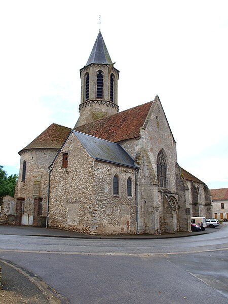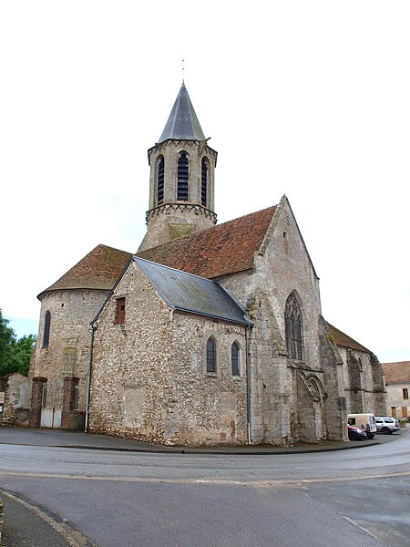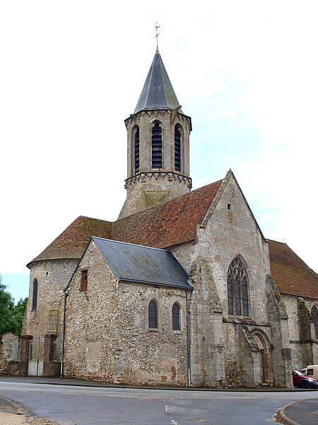 L'église Saint-Éloi, située à Aunay-sous-Auneau (Eure-et-Loir, Centre-Val de Loire), est consacrée à saint Éloi, patron des forgerons. L'édifice a été édifié en plusieurs étapes entre les XIe et XIXe siècles et est classé au titre des monuments historiques depuis le 10 décembre 1909. La composition comprend une nef voûtée sur croisées d'ogives datée du XIIIe siècle, prolongée par un chœur terminé par une abside semi-circulaire. Un bas-côté a été accolé au nord de la nef au XVe siècle et la chapelle nord a alors été surélevée à la même hauteur. Les voûtains de la nef et du chœur sont enduits et peints. Un clocher octogonal richement décoré, reposant sur une base de tour romane rectangulaire, s'élève au-dessus du chœur ; une flèche en charpente le couronne et une tourelle d'angle contient l'escalier d'accès aux combles et au clocher. Des agrandissements intervenus entre le XIIe et le XIIIe siècle semblent liés au pèlerinage à saint Éloi, invoqué pour la protection du bétail et des chevaux. La nef principale, composée de trois travées et plus élevée que le chœur, se distingue par sa voûte en pierre, manifestation de la richesse paroissiale à une époque où les vaisseaux voisins étaient généralement couverts d'un lambris en bois. Au XVe siècle, l'église a reçu des éléments de style gothique flamboyant, visibles notamment dans les fenêtres et les clés de voûte ornées de pendentifs, ainsi que de larges baies éclairant la chapelle nord au nord et à l'est. L'édifice a été restauré dans la seconde moitié du XIXe siècle pour réparer des destructions causées par la Révolution.