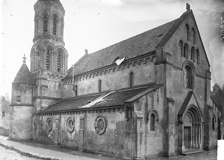 L'église Saint-Éloi de Tracy-le-Val, dans l'Oise, est une église catholique paroissiale rattachée à la paroisse Notre-Dame-de-la-Résurrection de Carlepont. Sa construction est supposée remonter au XIIe siècle et avoir été menée sous l'autorité des Chevaliers du Temple. Elle a été classée parmi les monuments historiques dès la liste de 1840, figurant parmi les treize premiers monuments ainsi protégés dans le département. Presque entièrement détruite pendant la Première Guerre mondiale, l'édifice a été reconstruit à l'identique dans le style roman primitif et a reçu une nouvelle bénédiction le 6 mars 1932. L'église se distingue par un clocher à deux niveaux, un premier étage carré surmonté d'un second octogonal, couronné par une pyramide de pierre. Les façades et les toitures présentent de riches sculptures : chapiteaux figurant des têtes sur colonnettes, modillons et rives ornés de figures fantastiques et de grotesques, ainsi qu'une frise de têtes d'hommes et d'animaux à la base du toit. Le portail, à fronton triangulaire, comporte des colonnettes aux chapiteaux délicats et une archivolte légèrement ogivale décorée de motifs en zigzag. L'intérieur, lumineux malgré des baies étroites et des oculi, conserve des inscriptions funéraires de la famille de l'Aigle gravées en lettres d'or sur plaques de marbre noir, dont une plaque ornée d'un médaillon représentant Richard-Augustin des Acres de l'Aigle, décédé à l'âge de dix ans en 1846. La chapelle des fonts abrite une cuve baptismale qui, comme les principales parties de l'édifice, porte le cachet du XIIe siècle. L'église est située au carrefour de la rue du Temple et de la rue du Général-de-Gaulle à Tracy-le-Val.