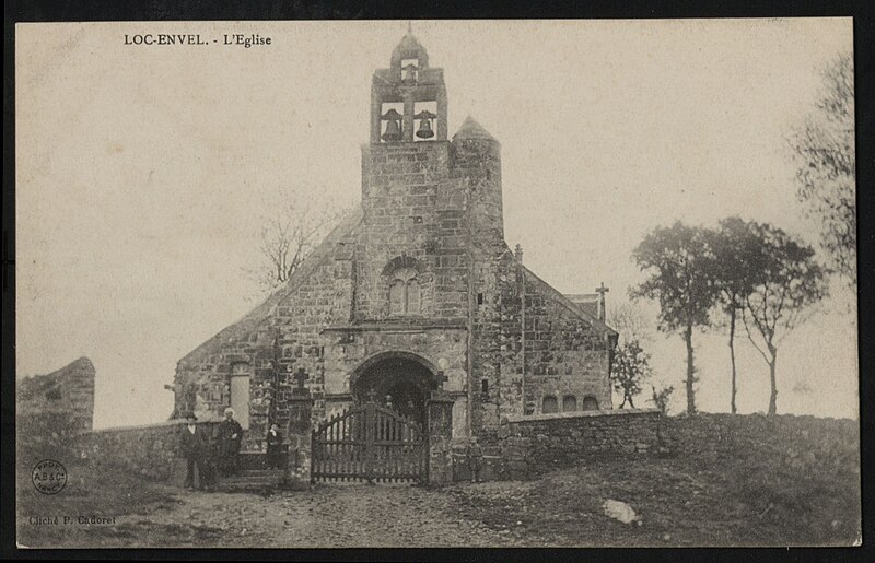 L'église Saint-Envel, située à Loc-Envel dans les Côtes-d'Armor, occupe un tertre dominant le bourg et la vallée du Guic, à l'orée ouest du bois de Coat-an-Noz, dans le pays de tradition du Bas-Trégor. Propriété de la commune, elle est affectée au culte de la paroisse de Bégard-Belle-Isle-en-Terre. Les sources évoquent des datations au XVe et au XVIe siècle pour l'édifice actuel, qui fait l'objet d'un classement au titre des monuments historiques depuis le 19 janvier 1911. L'église tire son nom d'un ermite, Envel, connu par la tradition et par les vitraux ; sa fête est célébrée le 11 décembre. La légende rapporte qu'Envel, son frère et leur sœur Jûna, exilés de l'île de Bretagne, fondèrent trois ermitages à l'orée du bois de Coat-an-Noz et que, lors d'une crue, Envel commanda au torrent de se taire par l'expression populaire « Tao, tao, dour mik, ma kevi kloc’h ma c’hoarik », rendant depuis le Guic silencieux. Dès 1163, une église du lieu appartient aux bénédictins de l'abbaye de Saint-Jacut, siège ensuite d'un prieuré-cure rattaché à la paroisse de Plougonver; le bourg est mentionné sous le nom de Locquenvel en 1477 et la propriété de l'abbaye perdure jusqu'à la Révolution. Restaurée dans son statut communal au XIXe siècle, la commune prend le nom de Loc-Envel en 1902. L'édifice, en forme de croix latine orientée est-ouest, comprend un clocher-mur à l'ouest, une nef centrale de trois travées flanquée de deux bas-côtés, un transept et un chœur doté d'une abside à trois pans égaux percée de trois fenêtres à meneaux fleurdelisés. Le style général est gothique flamboyant ; le clocher-mur et le chevet, ornés de chimères et de gargouilles, présentent également une tourelle d'escalier et un clocheton à trois baies. Trois petites baies percées dans le pignon, côté chapelle des fonts, permettaient aux lépreux d'assister aux offices, et la façade a été modifiée au XIXe siècle pour créer une porte donnant accès à la tribune par un escalier extérieur. À l'intérieur, la décoration en bois sculpté, attribuée au XVIe siècle, est restée intacte et d'une grande richesse, le mobilier d'époque s'y accordant pleinement. La voûte lambrissée repose sur une sablière entièrement sculptée et polychrome; elle présente mascarons, animaux réels ou fantastiques, personnages, engoulants sur les entraits et couvre-joints sculptés figurant notamment l'Agneau immolé puis des angelots tenant les instruments de la Passion. À la croisée du transept, la partie la plus riche d'ornementation voit aux quatre angles des statues grandeur nature des quatre Évangélistes soutenir les arêtiers ornés d'angelots ; ces arêtiers aboutissent à une grande clef de voûte pendante où une frise représente la Trinité, et un second pendentif figure le Christ en gloire. Une sirène sculptée sur une sablière, au buste très marqué, semble rappeler la condamnation des tentations charnelles. La tribune réservée aux châtelains de Coatannos est formée d'un ancien jubé flamboyant en bois reposant sur quatre colonnes sculptées et remplie de panneaux; la clôture des fonts baptismaux est également en bois sculpté. L'église conserve une relique de saint Envel, un os du bras, portée autrefois en procession lors du pardon, et présente près de l'autel plusieurs statues anciennes, dont celles de saint Envel, de la Vierge, de saint Yves et de saint Sébastien, ainsi que deux statues anonymes et un crucifix. L'autel en granite du XVIe siècle, à grande table monolithique, est surmonté d'un retable en bois du XVIIe siècle composé de cinq panneaux illustrant la Passion. À gauche du maître-autel, la porte du sacraire du XVIe siècle représente la messe où saint Grégoire voit le Christ sortir du tombeau. Les vitraux de l'abside, dont les meneaux fleurdelisés ont été refaits à l'époque moderne, associent éléments du XVIe siècle et réemplois : le vitrail central, réorganisé à partir de différents panneaux, montre le miracle de la Sainte Hostie au cœur d'un lys, tandis que les lancettes relatent la légende de saint Envel, où les loups occupent une place importante et où le nom d'Envel apparaît quelquefois sous la forme d'Armel dans les phylactères. D'autres verrières, modernes, évoquent la vie de saint Sébastien ou complètent la série de scènes légendaires d'Envel, dont des épisodes où le saint attelle des animaux pour labourer, intervient pour sauver des innocents ou guérir des malades.