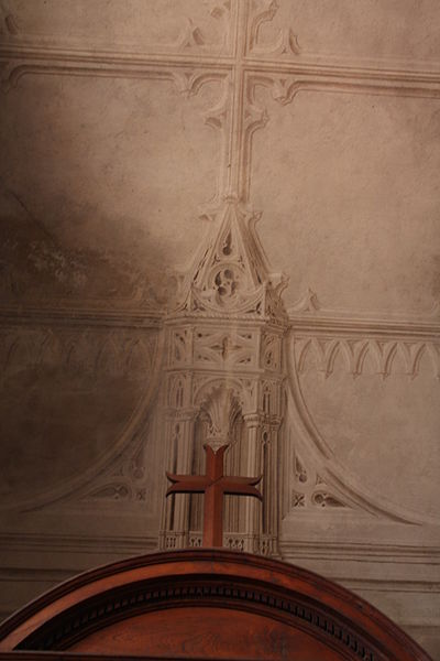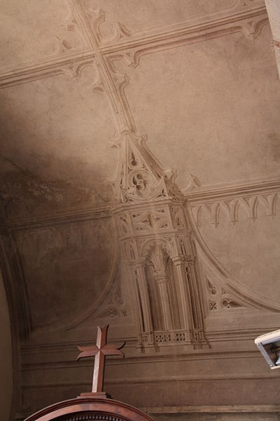 L'église Saint-Étienne d'Ainay-le-Château, dans l'Allier (France), est un édifice composé d'éléments de différentes époques. La partie occidentale est le vestige d'un sanctuaire roman ; sa travée médiane, qui supportait le clocher, est aujourd'hui associée à un clocher reconstruit au XIIIe siècle. La nef romane a vraisemblablement été démolie au XVIe siècle lors de la construction du portail de style Renaissance ; la nef actuelle et le transept ont été élevés au début du XVIe siècle, époque à laquelle des chapelles latérales et un décor polychrome ont également été ajoutés. Jusqu'en 1696, l'église s'achevait au niveau de l'arc triomphal actuel où se trouvait une baie de style flamboyant dont ne subsiste que la partie supérieure ; en 1696 le mur oriental a été ouvert pour édifier le chœur actuel. Une sacristie a été aménagée en 1841 puis démolie en 1973. Le portail Renaissance, le porche du XIIe siècle et une fresque du XVIe siècle ont été classés au titre des monuments historiques en 1913 ; le reste de l'église a été inscrit en 1980. L'édifice présente, outre le portail et le porche, une nef intérieure, une litre funéraire et une Pietà, et il peut être vu depuis la chapelle Saint-Roch.