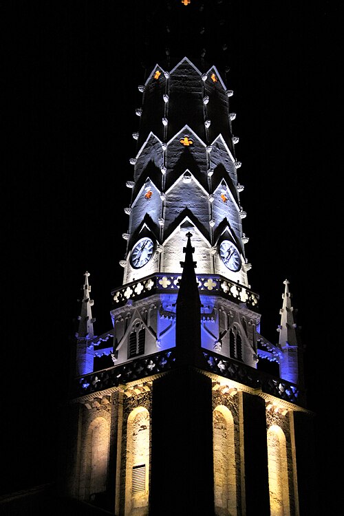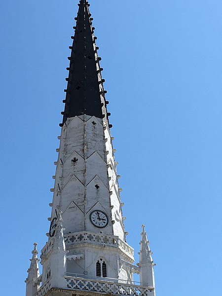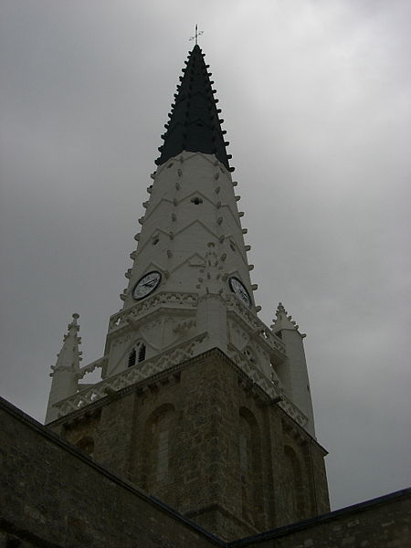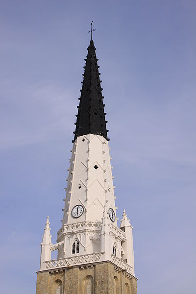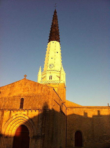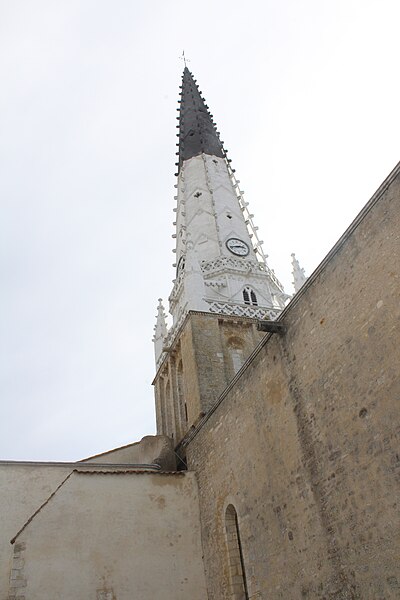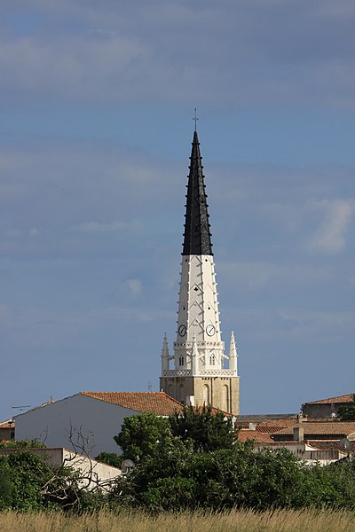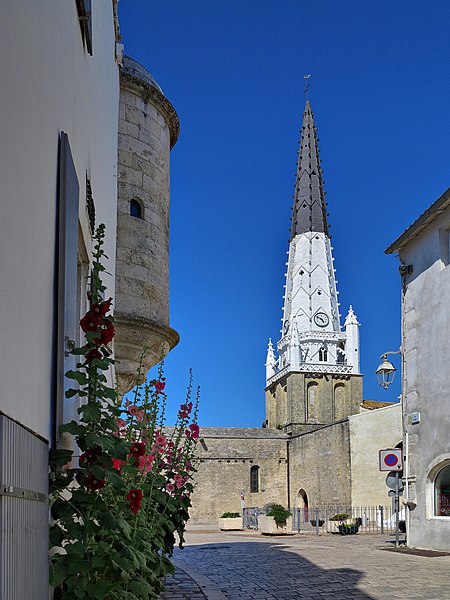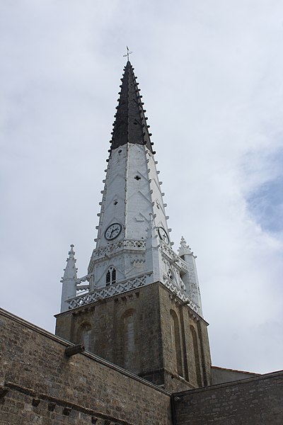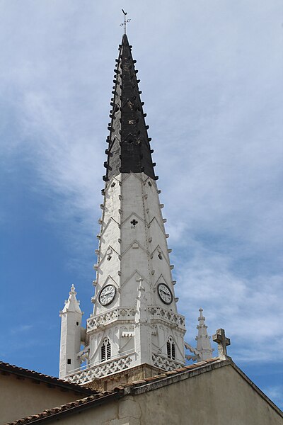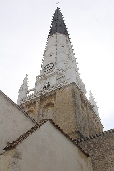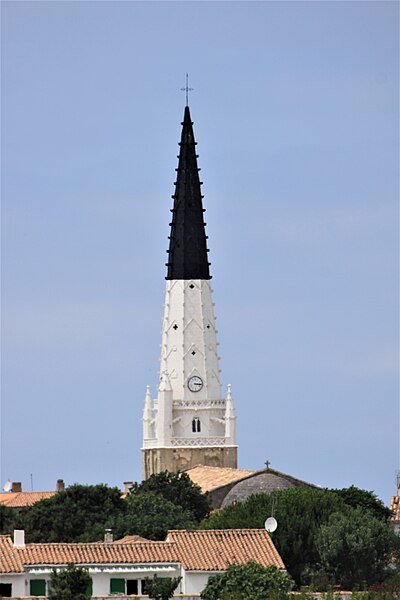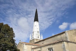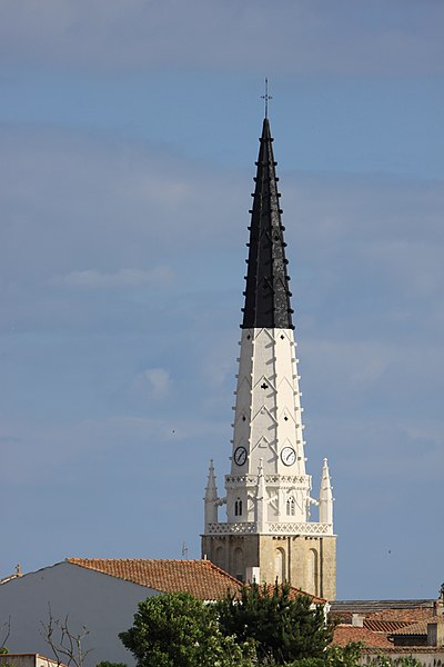 L'église Saint-Étienne se situe à Ars-en-Ré, sur l'île de Ré, dans le département de la Charente-Maritime (Nouvelle-Aquitaine). Son plan est en croix et elle rassemble des éléments de différentes époques. Le portail appartient au XIIe siècle et présente un style de transition entre le roman et le gothique, orné de sculptures travaillées. Il subsiste également une ancienne nef à un vaisseau, peut-être du XIe siècle, dont la voûte, la croisée et le bras droit du transept ont été reprises au XIIe siècle lors du voûtement et de l'élévation de la façade. Le chœur a été abattu aux XVIe ou XVIIe siècles pour permettre la construction d'une nouvelle nef à trois vaisseaux de quatre travées, et des chapelles latérales furent édifiées entre 1639 et 1651. La flèche, de style gothique flamboyant, date du XVe siècle ; octogonale et peinte en blanc et noir, elle servait d'amer aux navigateurs, se détachant de l'horizon et étant visible depuis la mer. Cette flèche, haute de plus de 40 mètres selon les sources, faillit s'effondrer lors d'une violente tempête en 1840. Elle abrite trois cloches nommées Françoise, Marie-Victoire et Louise, accordées respectivement sur les tonalités indiquées par les archives. L'ensemble a été classé monument historique le 29 décembre 1903. L'édifice a fait l'objet d'une restauration générale entre 2017 et 2022, intérieure et extérieure, la dernière phase prévoyant la reprise de la nef romane du XIIe siècle et de la sacristie. À l'intérieur, la nef gothique est couverte de voûtes angevines en pierre de taille tandis que les bas-côtés présentent des voûtements recouverts de plâtre. Les représentations religieuses datent pour la plupart du XVIIe siècle. L'église sert aussi de lieu d'inhumation pour des curés et des notables aux XVIIe et XVIIIe siècles. Elle a reçu la visite de personnalités politiques telles que Georges Clemenceau et Sadi Carnot. Le clocher apparaît par ailleurs dans l'ouvrage Raphaël 4 et la Bague d'Argent.