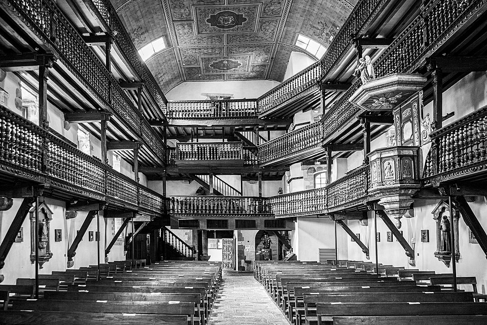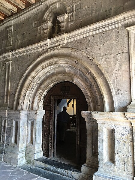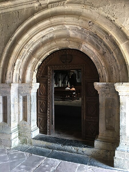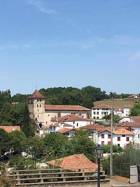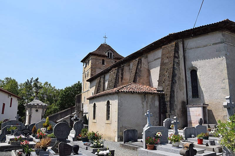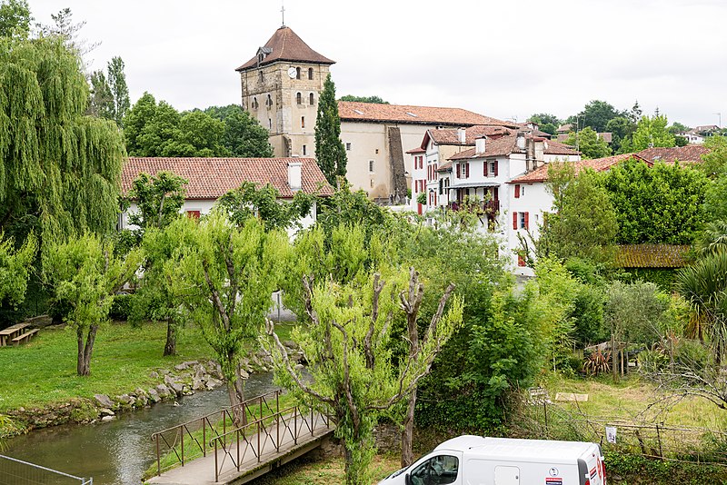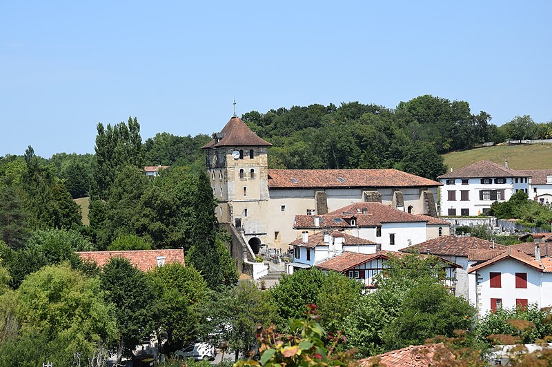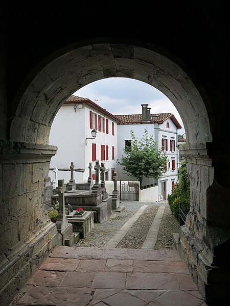 L'église Saint-Étienne d'Espelette, dans le Pays basque français (Pyrénées-Atlantiques), se situe sur la route des pèlerins de Compostelle et dépend du diocèse de Bayonne. Typique du Labourd, elle présente l'aspect d'une forteresse et les caractères propres aux églises basques : une longue nef bordée de galeries sur trois faces, poteaux sculptés et balustrades à balustres tournés. Remplaçant une église plus ancienne, l'édifice relève principalement du XVIIe siècle, la nef étant déjà achevée en 1593. Il s'appuie sur des contreforts et comporte un clocher-porche à l'allure de donjon (1667) ainsi qu'un portail de style Renaissance (1627). L'intérieur est richement décoré autour d'un retable baroque en bois doré du XVIIIe siècle, à deux registres rythmés par des colonnes et surmonté de quatre grandes statues : saint Jean‑Baptiste, saint Jacques, saint Pierre et saint Paul. Le tabernacle est encadré de petits bas‑reliefs dorés représentant l'arrestation et la lapidation de saint Étienne, thème repris par le tableau principal du retable. Les murs latéraux et la contrefaçade sont parcourus de trois étages de galeries en bois, installées lorsque la population a augmenté à partir du XVIe siècle ; jusqu'au début des années 1970 ces galeries étaient réservées aux hommes, les femmes et les enfants priant dans la nef. Parmi les œuvres conservées, on note un tableau intitulé Saint Jérôme entend les trompettes du Jugement dernier, offert par le baron d'Ezpelata en 1884 et attribué à Ribera, classé en 1991. L'église a également été le lieu de baptêmes et d'ordinations marquants : y furent baptisés le Père David, botaniste et zoologiste missionnaire en Chine, et le futur cardinal Etchegaray, qui y fut ordonné prêtre et offrit L'Adoration des bergers pour le retable de l'autel latéral droit. L'édifice a été inscrit aux monuments historiques le 19 mai 1925, puis classé dans son ensemble en 2014. On y remarque notamment les galeries, le portail, la Vierge à l'Enfant du retable, La Lapidation de saint Étienne, l'autel latéral côté Évangile et le Saint Jérôme attribué à Ribera.