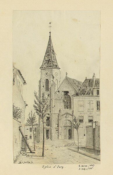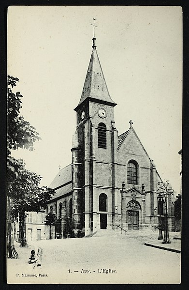 L'église Saint-Étienne est l'église paroissiale d'Issy‑les‑Moulineaux et fait l'objet d'une inscription au titre des monuments historiques depuis le 10 avril 1929. Une présence cultuelle ancienne est attestée sur ce site : des salles voûtées du VIIe siècle subsistent sous le jardin du presbytère et un texte de 1084 mentionne déjà une église. Le remarquable tympan roman placé à l'extrémité du bas‑côté nord provient vraisemblablement de cet édifice, peut‑être bâti aux XIe ou XIIe siècles et agrandi ou reconstruit en 1336. La cloche dite « Marie », datée de 1618 et conservée dans l'église, est l'une des plus anciennes du département des Hauts‑de‑Seine. L'édifice actuel a été élevé entre 1634 et 1661 et a été consacré en 1645. Gravement endommagée pendant les combats de la Commune, l'église subit la destruction de l'orgue, des vitraux, de la toiture et de parties des murs. Des travaux de reconstruction ont permis de rendre l'église au culte dès le 9 mai 1872, en présence du maréchal Patrice de MacMahon, et la restauration s'est poursuivie ensuite pour s'achever en 1880. L'édifice a fait l'objet de nouvelles restaurations extérieures et intérieures en 2006‑2007. Longue de 34,50 mètres et large de 15,50 mètres, l'église adopte un plan basilical, renforcé par de nombreux contreforts et surmonté d'un haut clocher. Revêtue de pierre de taille, elle conserve des éléments d'inspiration romane, notamment des fenêtres et de grandes arcades en plein cintre, qui témoignent de ses origines rurales. La tradition attribue les vantaux du portail principal au jeune roi Louis XIV et à sa mère Anne d'Autriche. Le mobilier et les décors intérieurs comprennent un retable de chœur entouré de boiseries ornées de six statues des XVIIIe et XIXe siècles, parmi lesquelles figurent saint Étienne et saint Vincent. On y trouve également deux bénitiers de la Renaissance et une cuve baptismale de l'époque Louis XIV provenant du château des Conti. Le mobilier liturgique contemporain (autel, ambon, tabernacle, colombe) a été réalisé par l'artiste Jean‑François Ferraton en 2014. L'église possède en outre un souterrain long de 163 mètres. Parmi les œuvres figurées, on relève un autel dédié à la Vierge avec l'Enfant dans un décor imitant le marbre, ainsi qu'une peinture monumentale intitulée Le Christ au pied de la croix, œuvre de Michel Marigny (1797‑1829), huile sur toile de 390 × 290 cm représentant saint Jean, la Vierge et sainte Madeleine au pied du Christ. La paroisse Saint‑Étienne fait partie du pôle BEL avec les paroisses Saint‑Bruno et Sainte‑Lucie ; le curé de ce pôle est le père Jacques Mevel. Issy‑les‑Moulineaux compte au total cinq paroisses : Notre‑Dame‑des‑Pauvres, Saint‑Benoît, Saint‑Bruno, Saint‑Étienne et Sainte‑Lucie. Parmi les curés connus figurent Michot en 1807 et Peugnet en 1817, ce dernier ayant eu pour vicaire Jean‑François Suet dit Latour du 5 août au 22 octobre 1817, qui deviendra curé de l'église Saint‑Gilles de Bourg‑la‑Reine. L'iconographie de l'église évoque également des figures chrétiennes telles que saint Augustin et saint Joseph.
