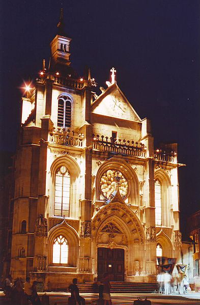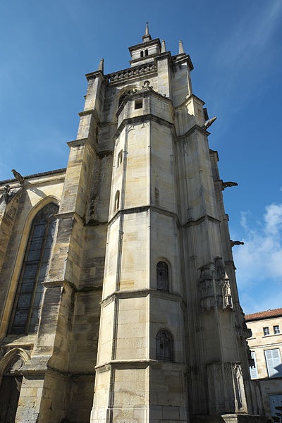 L'église Saint-Étienne, ancienne collégiale Saint-Pierre, se situe à Bar-le-Duc, dans la Ville Haute, au nord de la place Saint-Pierre. La collégiale Saint-Pierre a été fondée en 1315 par le comte de Bar Édouard Ier, sur le site d'une chapelle du XIIIe siècle, et placée en 1318 sous le patronage de la Vierge, des apôtres Pierre et Paul et de saint Étienne ; son chapitre devait comprendre un princier, un doyen, un prévôt et seize chanoines. Les travaux, amorcés au XIVe siècle, furent ralentis puis interrompus par les troubles de la guerre de Cent Ans et l'édifice fut presque ruiné en 1438 ; des indulgences pontificales et le concours des chanoines, du duc René Ier d'Anjou et des autorités locales permirent ensuite la reprise des travaux. Vers 1470 l'orient était presque achevé, puis la construction connut un nouvel arrêt entre 1480 et 1484 ; sous René II la voûte fut élevée, comme l'attestent des clés de voûte sculptées aux armes du souverain. La façade et les deux travées occidentales furent réalisées au début du XVIe siècle jusqu'en 1537 sous la direction de Louis Guyot, et le clocher fut érigé entre 1589 et 1630. En 1782, la collégiale Saint-Maxe du château des ducs de Bar devint église paroissiale ; après la destruction de cette dernière à la fin du siècle, les deux chapitres fusionnèrent et transférèrent trésor, reliques et dépouilles ducales à Saint-Pierre. Lors de la Révolution l'édifice subit d'importants dégâts : statues et vitraux brisés, armoiries effacées et mobilier détruit ; la collégiale fut fermée en 1790, rouverte en 1791 sous le nom d'église Saint-Étienne, inutilisée entre 1793 et 1795 et, en 1794, employée comme abri pour un convoi de prisonniers. Des restaurations au XIXe siècle modifièrent partiellement l'aspect de l'édifice : le trumeau du portail occidental fut supprimé en 1809 et des éléments jugés discordants furent démolis en 1854, notamment une chapelle adossée au bras sud du transept. L'église est classée au titre des monuments historiques depuis 1889 et a fait l'objet de publications et d'un web-documentaire.