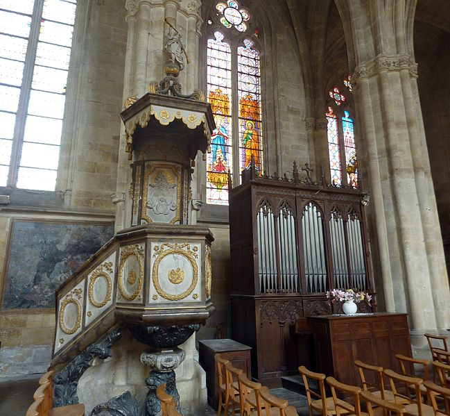 Parmi les peintures, la Crucifixion du début du XVIIe siècle représente la mise en scène du crucifiement avec, en arrière-plan, le château des ducs de Bar ; ce tableau est classé comme objet depuis 1901. La Mise au tombeau, peinture murale du XVIIe siècle représentant la déposition et les personnages qui entourent le corps du Christ, est classée depuis 1889. La présence d'un orgue de tribune remonte au XVIIe siècle ; un instrument reconstruit par Nicolas Dupont en 1770-1771 fut fortement endommagé pendant la Terreur, puis un nouvel orgue, réutilisant des éléments anciens, fut réalisé entre 1809 et 1828 par Jean-François Vautrin et Antoine François Brice Didelot, la console ayant été séparée en 1892 par Alexandre et Henri Jacquet. Le buffet, en chêne et tilleul, comporte un grand corps à cinq tourelles et un positif à trois tourelles ; la console indépendante, tournée vers le chœur, comprend deux claviers manuels et un pédalier droit ; le buffet est classé comme objet en 1971 et la partie instrumentale en 2000.