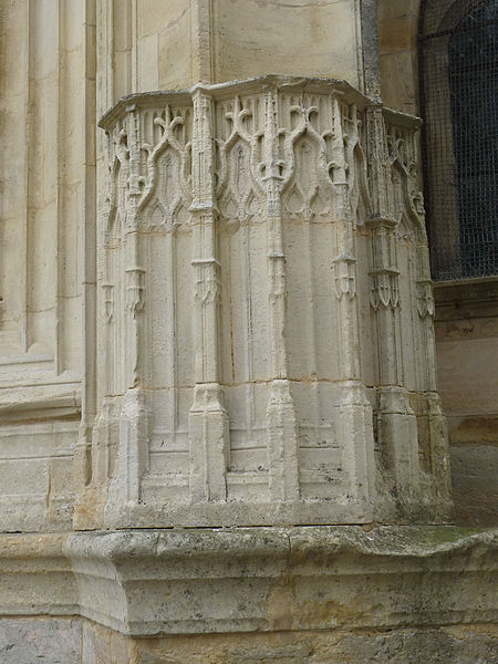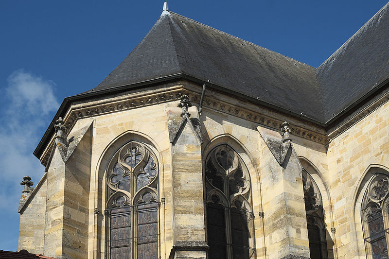 Plusieurs vitraux sont inscrits à l'inventaire général : un vitrail du XIXe siècle représente le miracle de Notre-Dame du Guet, et la verrière de la chapelle des fonts baptismaux contient des fragments du XVIe siècle montrant un ange portant une couronne d'épines, saint Maxe et saint Christophe. Les trois verrières du chœur, exécutées par le peintre-verrier Höner Victor au XIXe siècle, présentent au centre la lapidation de saint Étienne et, sur les vitraux latéraux dédoublés, des saints tels que saint Antoine, saint Vincent de Paul, saint Pierre et saint Paul. Dans le transept sud se trouve La Procession des reliques de saint Maxe, vitrail de 1880 par Charles-François Champigneulle figurant la translation de 1839 par l'abbé Claude Rollet, réalisé selon une technique de vitrail photographique ; Champigneulle a également réalisé pour l'église des verrières représentant l'Annonciation et la Mort de saint Joseph.