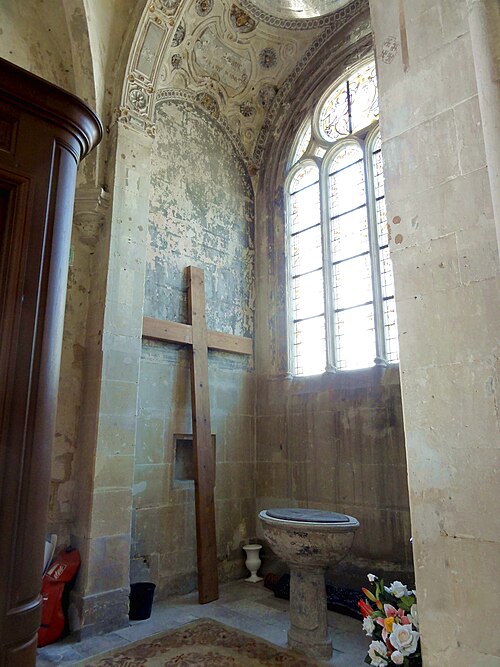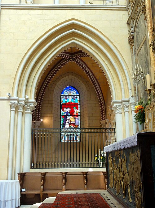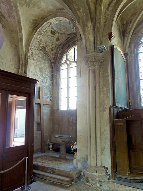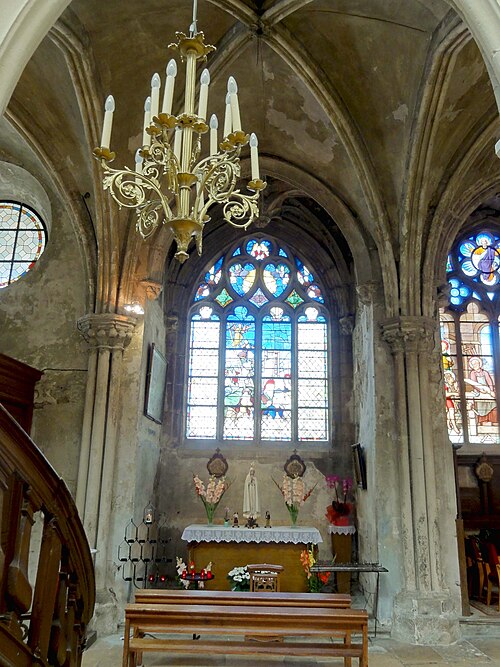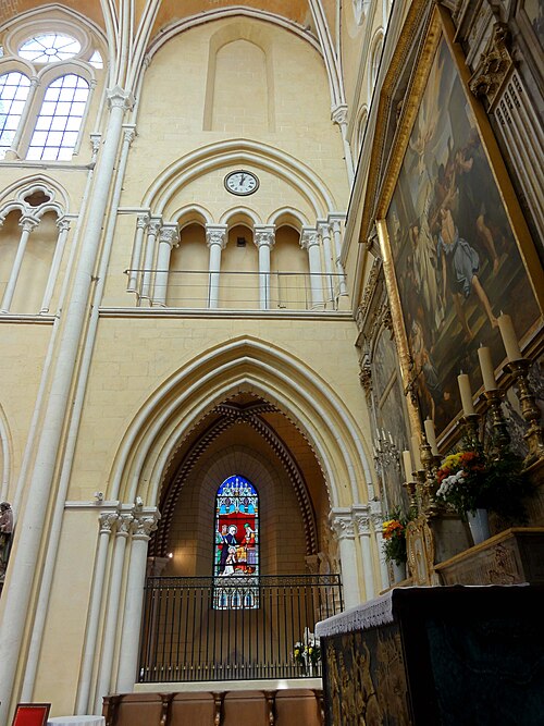 Les vitraux figurent parmi les éléments les plus précieux : la rosace du chevet conserve des panneaux d'origine contemporains de la Sainte‑Chapelle, les verrières hautes du chœur datent des XIIIe‑XIVe siècles et plusieurs verrières des chapelles conservent des fragments du XVIe siècle. La rosace représente notamment le Christ entouré des apôtres et comporte des scènes liées aux activités saisonnières, et des scènes de la vie de saint Jean‑Baptiste ou du songe de Jacob figurent dans des verrières latérales. Implantée près de l'extrémité sud‑ouest du centre ancien, l'église donne sur le parvis Saint‑Étienne et s'inscrit dans un tissu urbain où places et rues offrent des perspectives et des reculs visuels, en particulier depuis la place des Déportés.