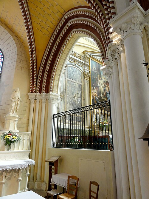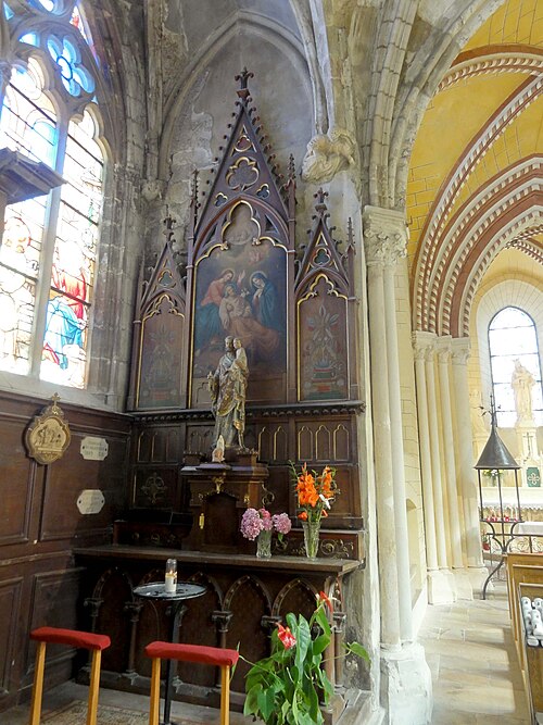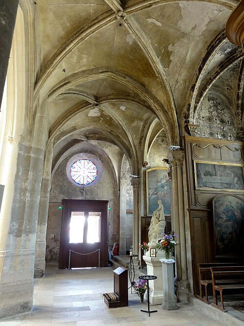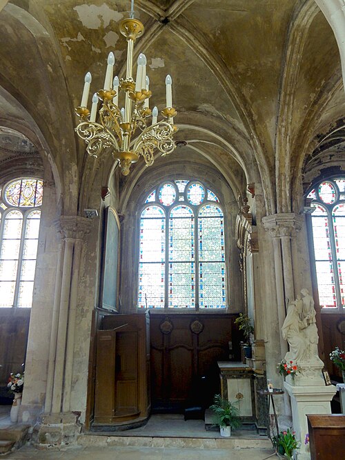 La chapelle la plus ancienne, fondée au XIVe siècle et dédiée primitivement à la Vierge, se signale par un remplage rayonnant tardif et de grands culs‑de‑lampe sculptés ; les autres chapelles des XVe et XVIe siècles montrent des solutions variées, du style flamboyant à des compositions de la Renaissance souvent plus sobres. Le décor sculpté des chapiteaux, des clés de voûte et des culs‑de‑lampe est notable par sa variété, mêlant motifs végétaux, figures d'anges et créatures fantastiques. Le mobilier comporte plusieurs éléments protégés : un devant d'autel polychrome représentant le martyre de saint Étienne, des crédences et un bénitier de la fin du XVIe siècle, une croix de procession en cuivre argenté, des boiseries flamboyantes du XVe siècle, ainsi que des vantaux de sacristie et une paire de fauteuils de style Louis XVI. L'orgue de tribune conserve la montre du positif dorsal ancienne et sa partie instrumentale bénéficie d'une protection au titre d'objet. Plusieurs tableaux classés ornent les chapelles et le maître‑autel, parmi lesquels des œuvres représentant le martyre de saint Étienne, l'Annonciation, la Présentation de Marie au Temple, les Âmes du purgatoire et la Communion de saint Jérôme. La stèle funéraire de Pierre Germain et le gisant d'un chevalier retrouvés dans l'église sont également protégés et exposés dans les bas‑côtés.