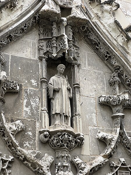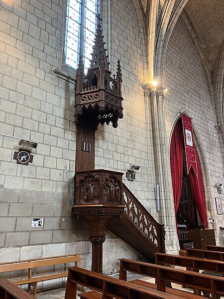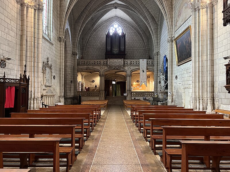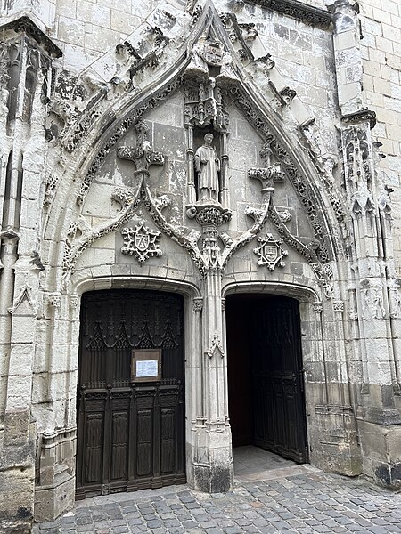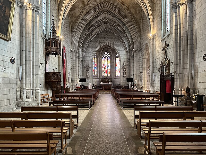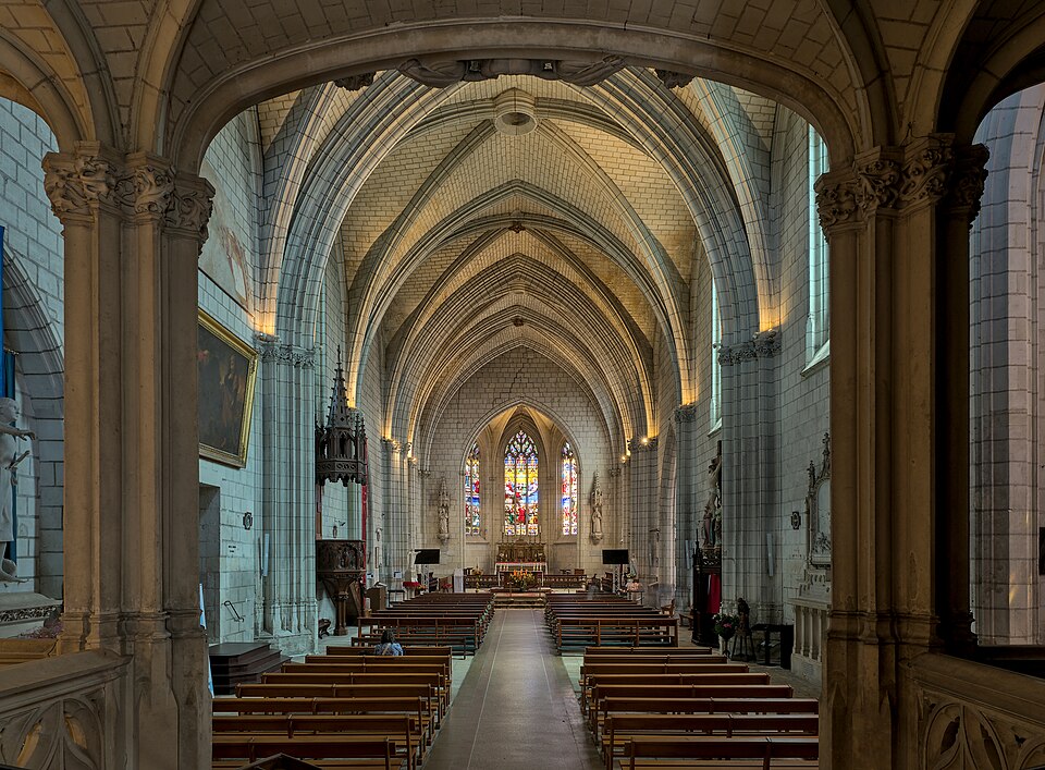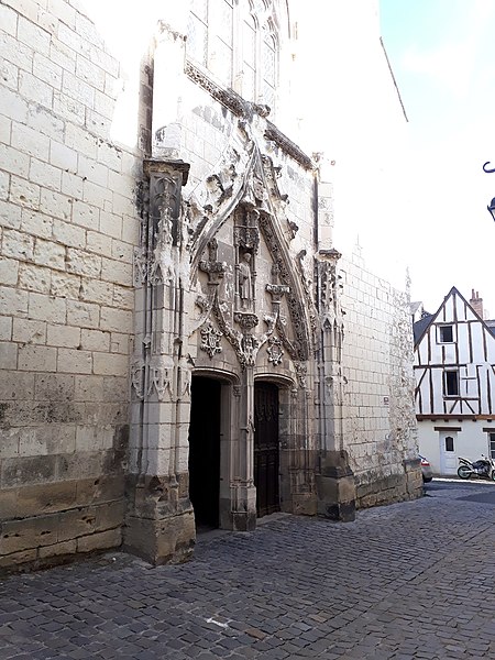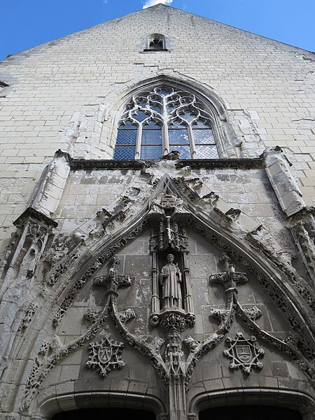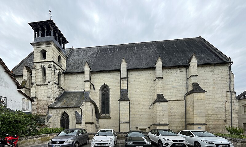 L'église paroissiale Saint-Étienne de Chinon se situe sur la rive droite de la Vienne, au pied du coteau, à l'est du bourg médiéval, le long de la rue Jean-Jacques-Rousseau, à moins de 150 mètres à l'ouest-sud-ouest de la collégiale Saint-Mexme. Son chœur est orienté vers l'est, selon l'usage chrétien. Une première église romane a été bâtie au XIe siècle; de cet édifice ne subsiste que la base du clocher. L'édifice actuel résulte d'une reconstruction du XVe siècle conduite par l'architecte Mesnager pour Philippe de Commines, entreprise entre 1460 et 1490. Les travaux, commencés sous Charles VII, ont abouti à l'église que l'on voit aujourd'hui. L'édifice a été inscrit au titre des monuments historiques par décret du 18 juin 1962. La façade, de style gothique flamboyant, présente une porte double en anse de panier surmontée d'accolades à crochets et fleurons encadrant des niches à dais; le tympan est inscrit sous une grande accolade retombant sur deux contreforts creusés de niches et couronnés de pinacles. L'intérieur se compose d'un vaisseau unique de sept travées barlongues, caractéristique du gothique angevin: les cinq premières forment la nef et les deux dernières le chœur. Des arcades en tiers-point séparent la nef des chapelles latérales. Le chœur se termine par une abside pentagonale percée de fenêtres à réseaux flamboyants; les vitraux proviennent de l'atelier de Lucien-Léopold Lobin. Le clocher, élevé sur les vestiges du clocher roman, est implanté au nord de la cinquième travée; une sacristie lui fait face au sud. La tribune de l'orgue reflète elle aussi le style flamboyant. Une fresque retrouvée lors de travaux à la collégiale Saint-Mexme est exposée contre le mur nord de la nef, qui abrite par ailleurs une statue de Jeanne d'Arc due au sculpteur François Sicard. Jusqu'en 1975, le mur gouttereau nord supportait une maison particulière dite « maison du Pilier Saint-Étienne », ainsi nommée en raison d'un pilier en bois sculpté représentant la lapidation de saint Étienne. Au XXIe siècle, Saint-Étienne demeure l'une des églises paroissiales de Chinon, aux côtés de Saint-Maurice; depuis 2000, la paroisse Sainte-Jeanne-d'Arc est confiée à la Communauté Saint-Martin.