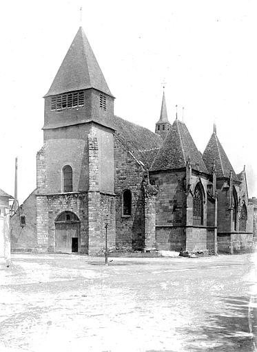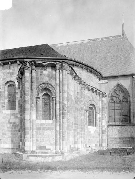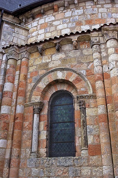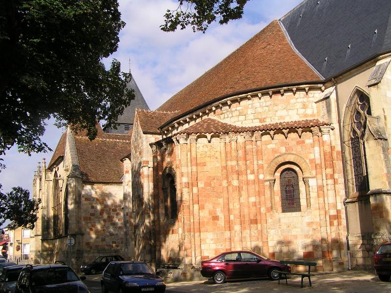 L'église se dresse le long de l'ancienne voie romaine, devenue au Moyen Âge le Grand Chemin Royal de Bourges à Dun puis vers Lyon, voie très fréquentée par voyageurs, pèlerins et marchands ; la proximité de cet itinéraire explique la présence d'un déambulatoire. Le chevet, aux absidioles latérales épaulées par des faisceaux de colonnettes, évoque les constructions poitevines ; il est réalisé en calcaire lacustre ferrugineux à la teinte rougeâtre locale, tandis que les chapiteaux sont taillés en pierre de Charly, mieux adaptée à la sculpture. Les modillons portent têtes d'hommes et d'animaux ; les archivoltes, corniches et pinacles des chapelles latérales présentent un décor sculpté entre le XIIe et la transition XVe–XVIe siècle, avec quelques animaux en haut-relief.