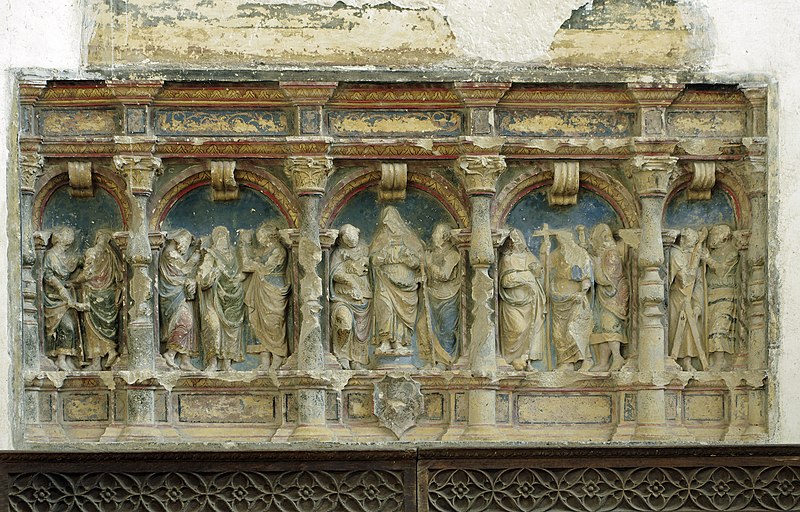 Un premier orgue fut installé en 1630 ; l'instrument actuel a été acquis en 1858, restauré en 1974, remonté en 1998 avec l'adjonction d'un grand orgue et la tribune a reçu un escalier en 2001. Sous les grandes orgues se trouve un tableau de pierre représentant la fuite en Égypte.