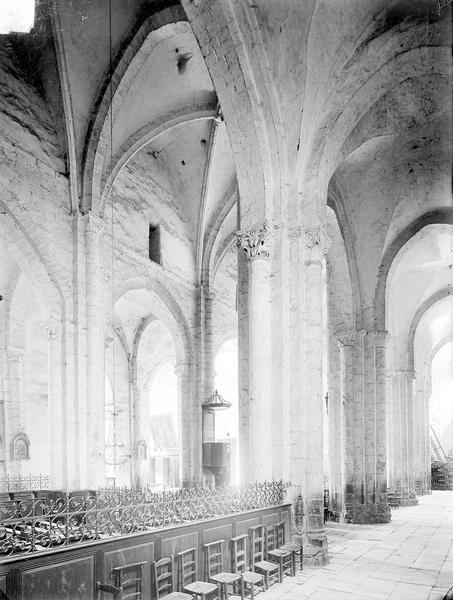 La nef, voûtée d'ogives à la fin du XIVe siècle, est accompagnée de collatéraux couverts de voûtes d'arêtes ; elle conserve plusieurs retables des premières chapelles latérales illustrant la transition du gothique à la Renaissance, avec des influences flamandes et ligériennes mêlées au style berrichon. Côté nord se succèdent la chapelle de la Nativité, avec un monument gothique représentant la crèche, la chapelle de saint Joseph (ou de saint Louis), dite aussi de Lammerville depuis 1855 et abritant un tableau de la Sainte Famille et une piéta du XVIe siècle restaurée en 2004, puis la chapelle du Saint-Sépulcre, qui présente un groupe sculpté du Christ étendu et une fresque du Christ en gloire. Côté sud, la chapelle des fonts baptismaux — aussi appelée des Trois Roys ou des tailleurs de pierre — conserve un retable en pierre du XVe siècle, l'Adoration des Mages, partiellement martelé pendant les guerres de Religion, et un vitrail en partie composé de fragments provenant de la chapelle Saint-Vincent du château ; la chapelle de Notre-Dame-de-Lorette, dite de Bengy et construite en 1529, a conservé la statue de la Vierge de Lorette, tandis que ses vitraux et son retable ont souffert des incendies de 1562 et 1569 ; la verrière actuelle date de 1952 et les clés de voûte représentent prophètes et évangélistes. La chapelle du Sacré-Cœur possède une fenêtre à meneaux dont le vitrail a été refait en 1952, avec des vestiges de verrières antérieures détruites pendant les guerres de Religion.