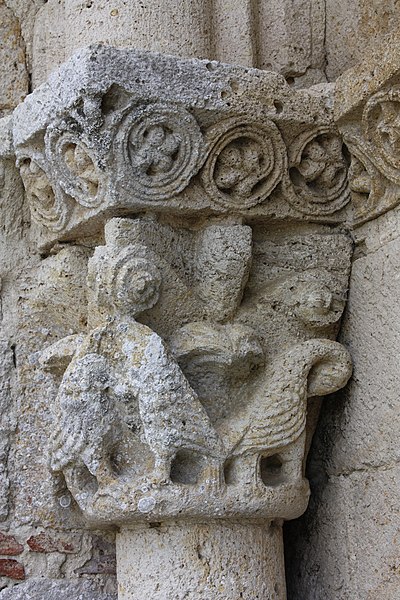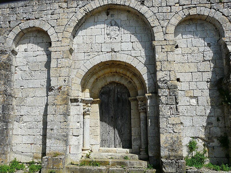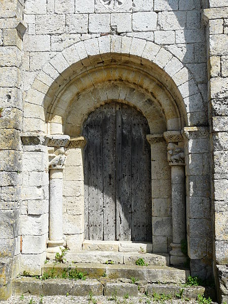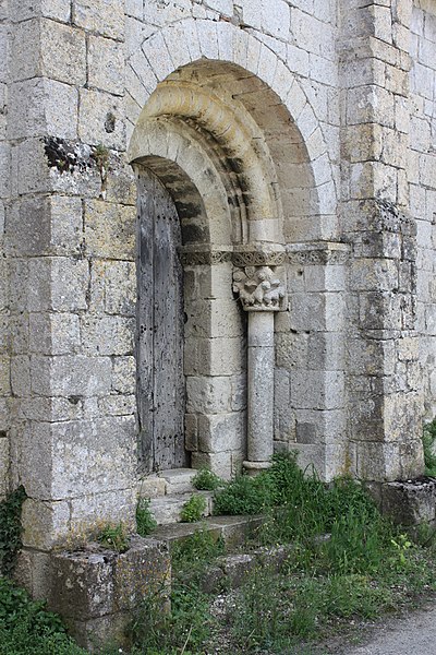 De plan roman, l'église présente une nef unique sans transept et un chevet plat, éclairées par de très étroites ouvertures formant meurtrières. Les voûtes du chœur ont été refaites sur croisées d'ogives. Sur la face nord, une tour ronde semi‑circulaire est accolée et sert de tourelle d'escalier et de clocher. La façade occidentale est ornée d'un registre d'arcatures aveugles sur pilastres ; l'arcature centrale, plus haute, porte deux petites fenêtres murées au second niveau et se termine par un pignon triangulaire ; le portail s'ouvre sous cette arcade centrale. Le portail roman présente un plein cintre mouluré dont les archivoltes comportent un tore entre deux bandeaux ; un bandeau sculpté de feuillages repose sur des piliers carrés et des colonnes rondes aux chapiteaux historiés ornés d'oiseaux et d'animaux fantastiques. Dans le tympan figure le Christ triomphant, à demi assis, bénissant de la main droite et tenant un volumen dans la main gauche. Selon Tholin, l'église se compose de deux parties à peu près carrées : le sanctuaire (8,50 m de longueur sur 7,50 m de largeur) et la nef (9,30 m de longueur, 8,50 m de largeur et 11,60 m de hauteur). La nef est renforcée par des contreforts.