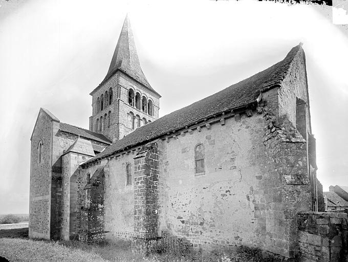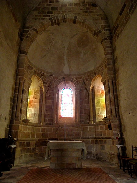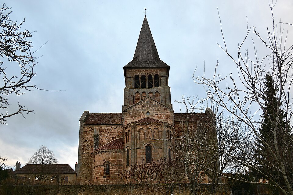 L'église Saint-Étienne se trouve à Franchesse, dans le département de l'Allier. Construite par les moines de Souvigny au XIIe siècle et remaniée au XVe siècle, elle dépendait de l'ancien diocèse de Bourges. L'influence du Berry se lit à l'extérieur par une arcature aveugle ceinturant la partie supérieure de l'abside. L'édifice roman comprend une nef à collatéraux, un transept saillant pourvu de chapelles orientées et une abside en hémicycle flanquée de deux absidioles. À l'extérieur, des contreforts massifs et une tour d'escalier structurent l'architecture. L'abside en hémicycle est rythmée par des colonnes-contreforts, des modillons, des arcatures aveugles et un cordon de billettes, repris sur les absidioles. Le clocher carré au-dessus de la croisée, typique du Bourbonnais, présente un étage aveugle et un niveau ouvert; autrefois surmonté d'une flèche en pierre, il est aujourd'hui couvert de bardeaux de châtaignier. À l'intérieur, le chœur alterne baies cintrées et arcs en mitre d'influence auvergnate. De nombreux chapiteaux sculptés représentent personnages, oiseaux et rinceaux, traités de façon naïve. Les fonts baptismaux à colonnettes datent des XIIe–XIVe siècles, et le bénitier en pierre ainsi qu'une plaque tombale appartiennent à la fin du XIIIe–début du XIVe siècle. La façade sud comporte un portail en plein cintre avec archivolte et cordon de billettes, encastré dans un avant-corps surmonté d'un glacis à modillons à masque. L'édifice est classé au titre des monuments historiques depuis 1886. Les photographies montrent l'intérieur de la nef, un chapiteau polychrome, l'absidiole ouest et le chevet.